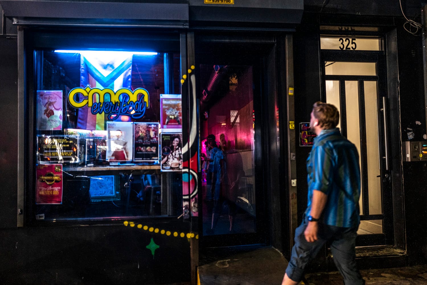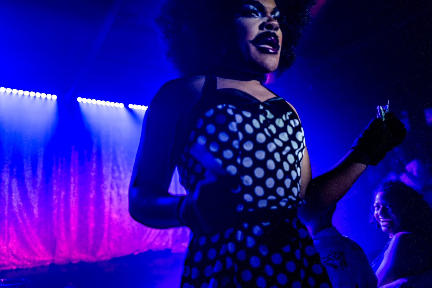At the end of June, near the corner of Clifton Place and Franklin Avenue in Bed-Stuy, two performers crossed the street in front of me. I took a photo and we exchanged contact information. “We are going in here!” They pointed to a colorful sign that read “C’Mon Everybody” and day after day the sight of it accompanied me as I went home at night. Two weeks later, at a party on Fire Island, I connected with actor and drag artist Travis Battle, a.k.a. Ella Fartzgerald, who belongs to The POC Drag Art Collective. A few days later I learned that the collective was coming to my block for The Collection Bowl, a weekly event that raises funds for different organizations — that night it was for the Sylvia Rivera Law Project, the following week for the Caribbean Equality Project, and after that the tips will go to New Jersey organization TGNC Bridges 4 Life.