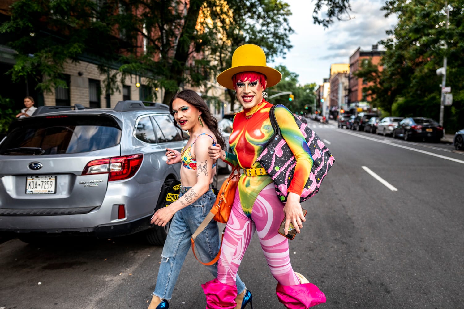 At the end of June, near the corner of Clifton Place and Franklin Avenue in Bed-Stuy, two performers crossed the street in front of me. I took a photo and we exchanged contact information. “We are going in here!” They pointed to a colorful sign that read “C’Mon Everybody” and day after day the sight of it accompanied me as I went home at night. Two weeks later, at a party on Fire Island, I connected with actor and drag artist Travis Battle, a.k.a. Ella Fartzgerald, who belongs to The POC Drag Art Collective. A few days later I learned that the collective was coming to my block for The Collection Bowl, a weekly event that raises funds for different organizations — that night it was for the Sylvia Rivera Law Project, the following week for the Caribbean Equality Project, and after that the tips will go to New Jersey organization TGNC Bridges 4 Life.