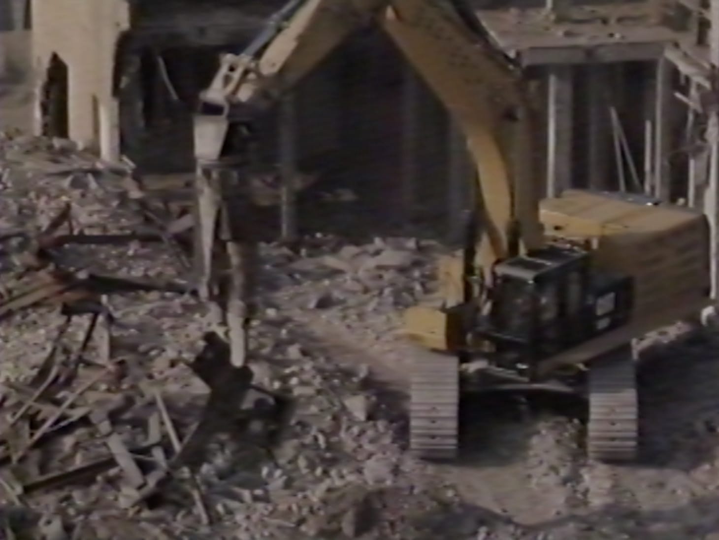 In This is an Address, Wortzel layers footage from Randy Wicker’s 1995 interview with Rivera over her own spectral documentation of the dismantling of the Gansevoort Destructor Plant, a former garbage incinerator and one of the last vestiges of the old Meatpacking District — pre-new Whitney and outposts of high-end designers like Marni. Wortzel, a former education staffer at the Whitney, remembers observing the plant’s destruction from the museum’s offices and feeling the uncanny echoes of centuries of communities forcibly displaced, beginning with the Lenape people.