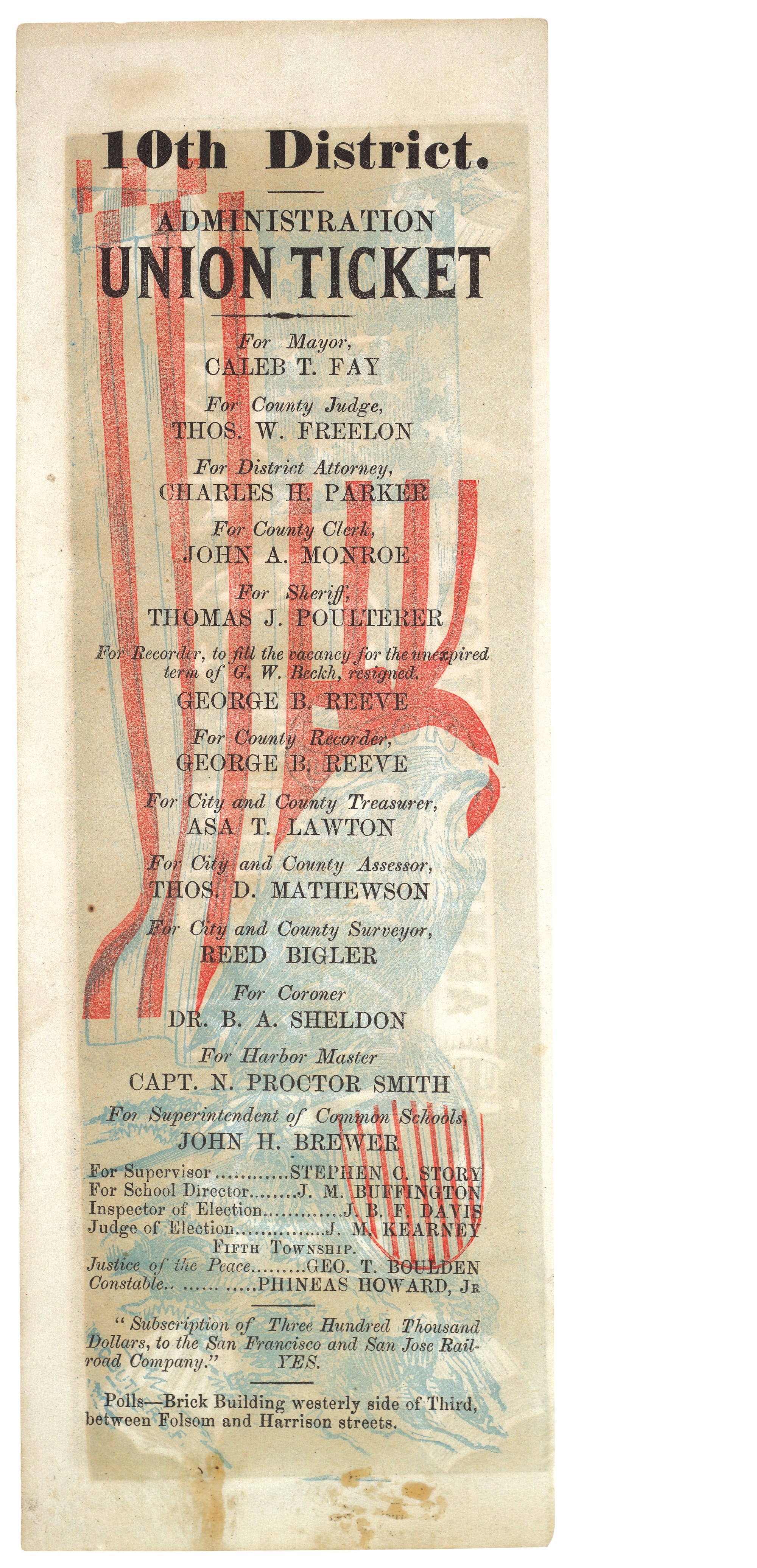 As a graphic designer, not a historian, Cheng says she felt free to look for the ballots that were most interesting to her. She found ones marked with images of roosters, a Dr. Seuss-like tree, and a ship to stand in for political parties — which grew to a large array in the early to mid-19th century, including the Liberal and Regular Democrats and Republicans, the Free Soil Party, the Citizens Party, the Labor Reform Party, and the Greenback Party. Cheng also found “pasters,” or gummed slips, handed out at the polls to write in an alternative candidate, and ballots with elaborate and colorful designs on the back to make them more attractive, as well as making it easier for party bosses to tell from the designs how people were voting.