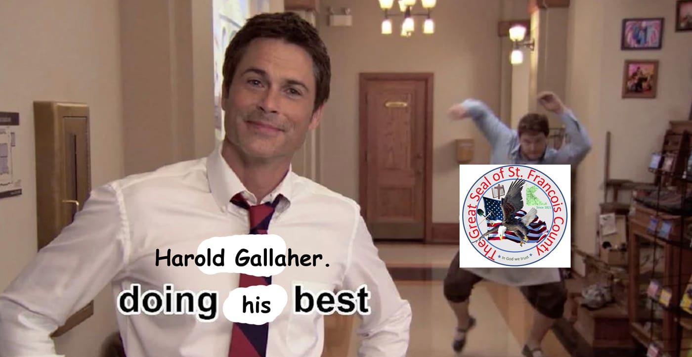 As the old saying goes, if you can’t do something right, do it anyway! St. Francois County, Missouri, population 65,359 (as of the 2010 census), has made national news as they debuted a fresh new iteration of their county seal. The design appears to have been put together in a 1995 version of Microsoft Paint, and is the handiwork of St. Francois County Presiding Commissioner Harold Gallaher.