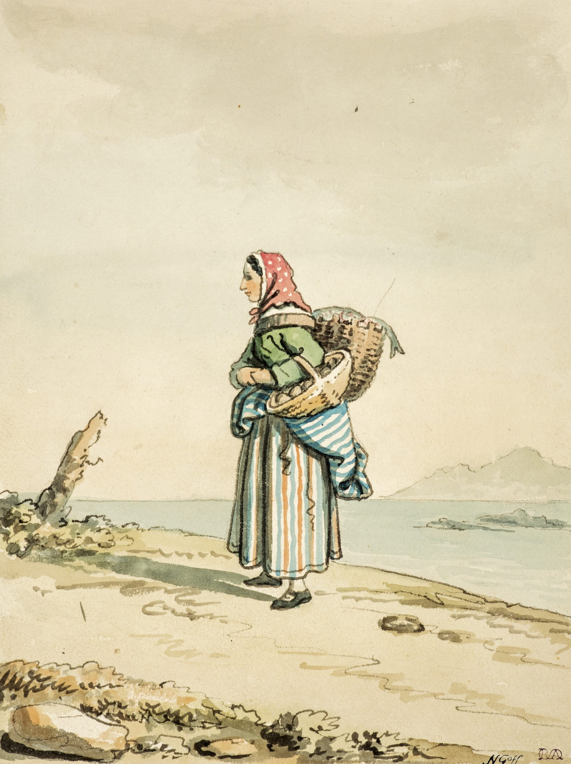 Unlike “Edinburgh Milkmaid,” dated in the mid-1780s to early ’90s, Allan’s character studies were evocative drawings that simply captured types, often eluding the detailed expressions and personalities of the sitters. The Edinburgh Characters only gestured toward the essence of people like coalmen, soldiers, and fishwives, but never their specific identities, offering insight into the city's 1780s milieu. Many images from the series are held in the National Galleries’ collection.