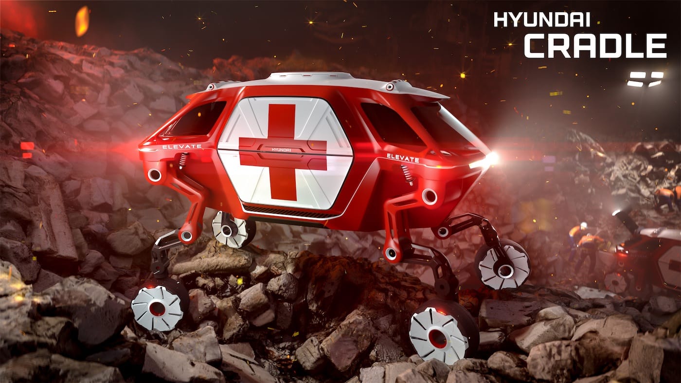 “When a tsunami or earthquake hits, current rescue vehicles can only deliver first responders to the edge of the debris field. They have to go the rest of the way by foot. Elevate can drive to the scene and climb right over flood debris or crumbled concrete,” said John Suh, Vice President and Head of Hyundai CRADLE, in a statement. “This technology goes well beyond emergency situations. People living with disabilities worldwide that don’t have access to an ADA ramp could hail an autonomous Hyundai Elevate that could walk up to their front door, level itself, and allow their wheelchair to roll right in. The possibilities are limitless.”