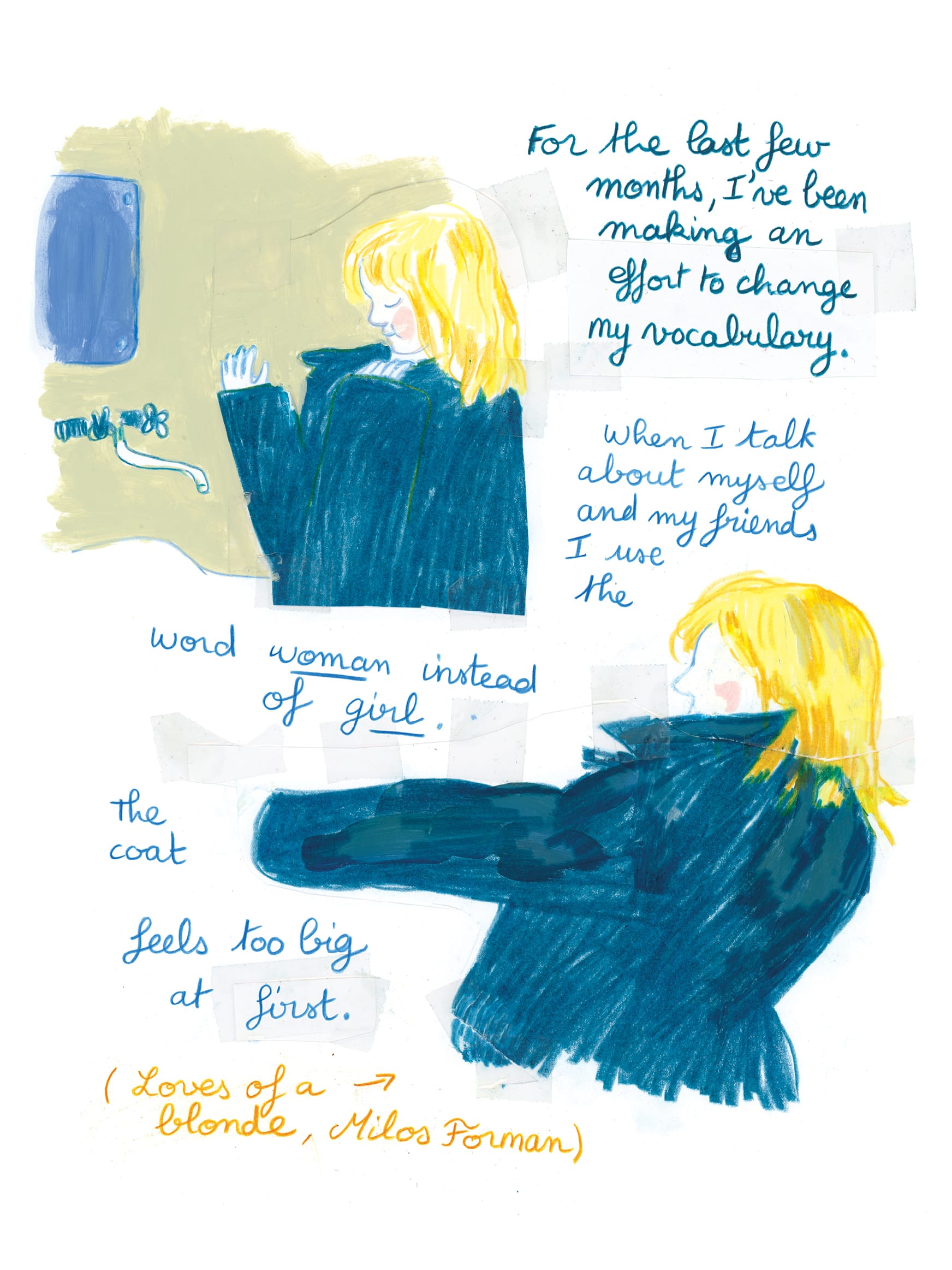 And she resolves to stop chasing the admiration of men who can feel freer in their bodies, and less aware that the world is full of dangers. Near the end, she writes, “I’m starting to fall in love with the idea of being a woman.” Clearly, part of a woman’s work is trying to reach this conclusion.
