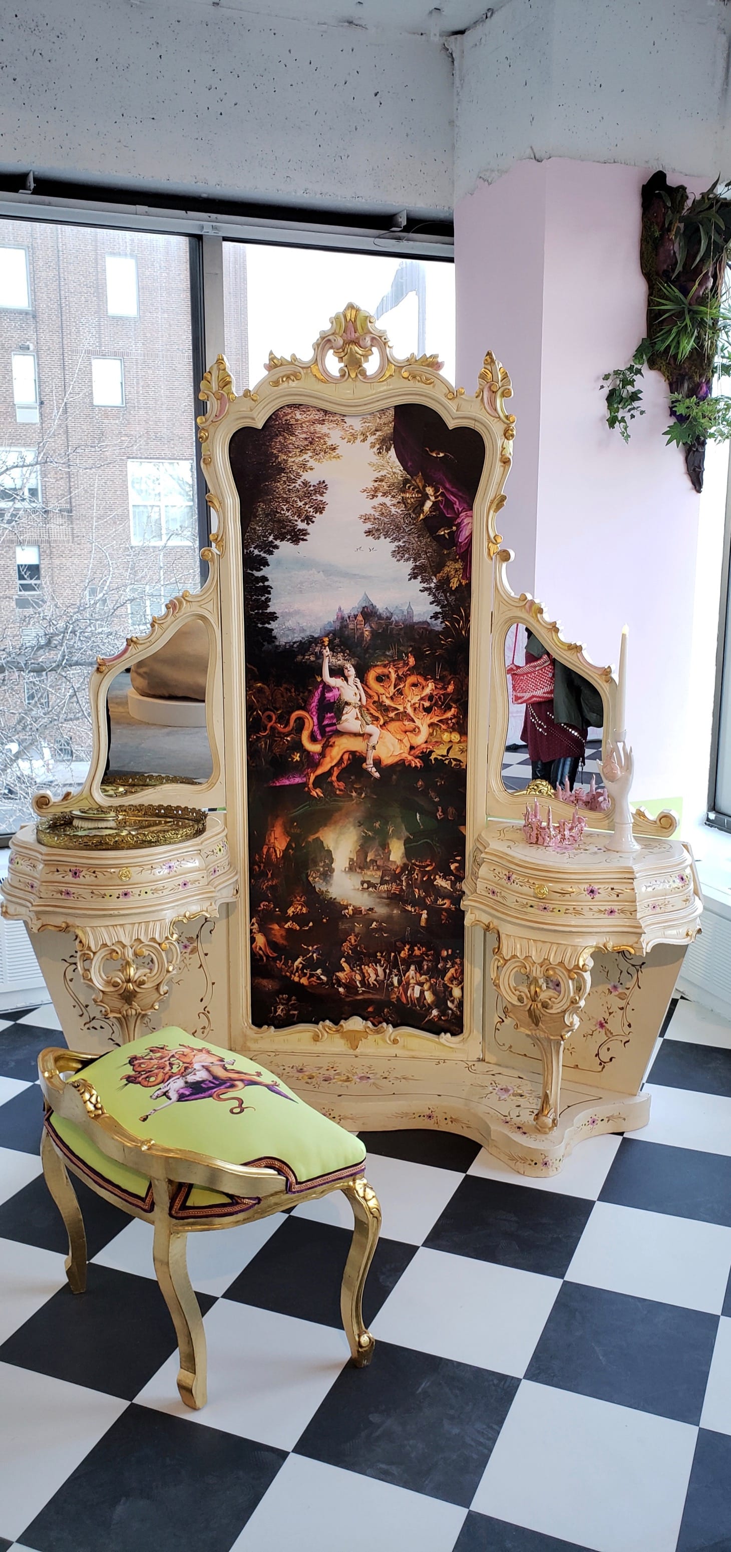Other shows pointed to worlds that were elsewhere, either historically or geographically. For A World All Her Own, Gracelee Lawrence, Jen Dwyer, and Lina Puerta curated Anna Cone’s elaborately baroque vanity with her own highly fantastical self-portraits printed in place of the mirror. There is even a fanciful bench attached to complete the ensemble. Coral Projects: Underwater Land Art Lab, curated by Vanessa Albury and Tamara Weg, includes works that are destined to become part of an underwater exhibition to take place this year off the coast of Jamaica, specifically in the Oracabessa Bay Fish Sanctuary. The works included either reference ocean life or can be scaled to live within an actual coral reef.