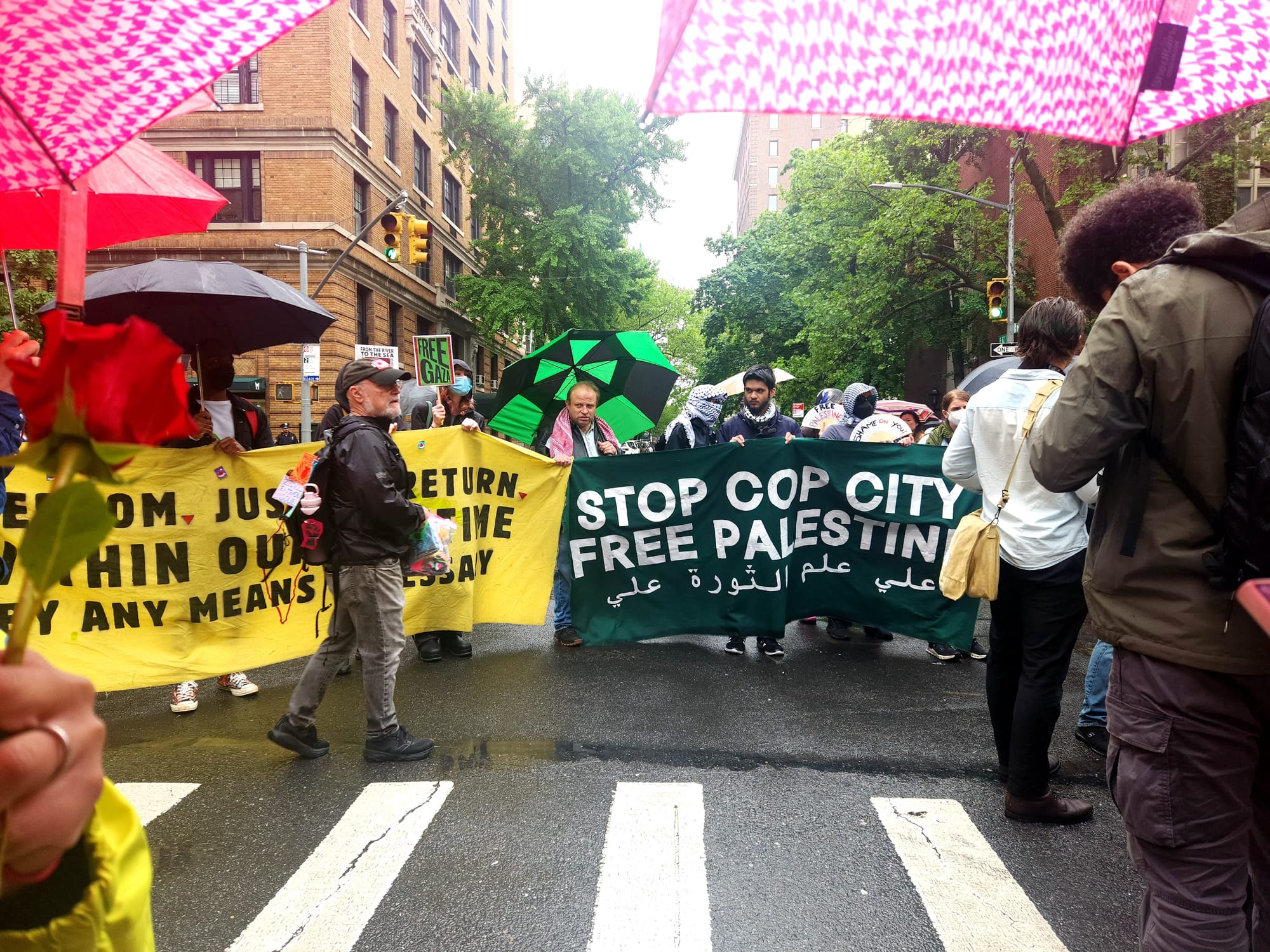 It gets even less funny when I consider that just one avenue away from the Gala, some 200 pro-Palestine protesters were gathered outside in the pouring rain to rally, chant, and drum for Gaza for the second year in a row, largely ignored by the majority of outlets and online commentators.