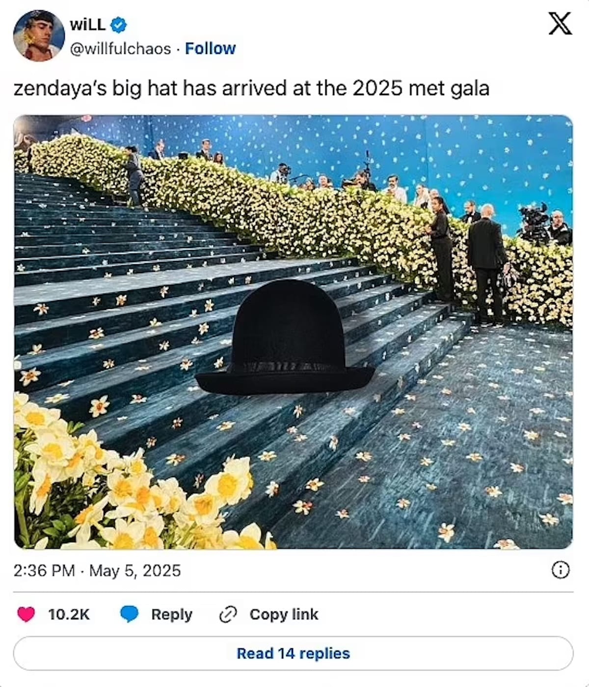 The morning-after meme frenzy has followed the Met Gala for at least a decade now, with allegations of Jason Derulo falling down the red carpet stairs re-emerging annually since 2015. Maybe it's actually funny, maybe it's just our way of punching up at the elites in an era of gaping class chasms, but either way, latching onto styling gaffes and shady moments is a canonized audience response to the glitzy fundraiser for the Metropolitan Museum of Art's Costume Institute.