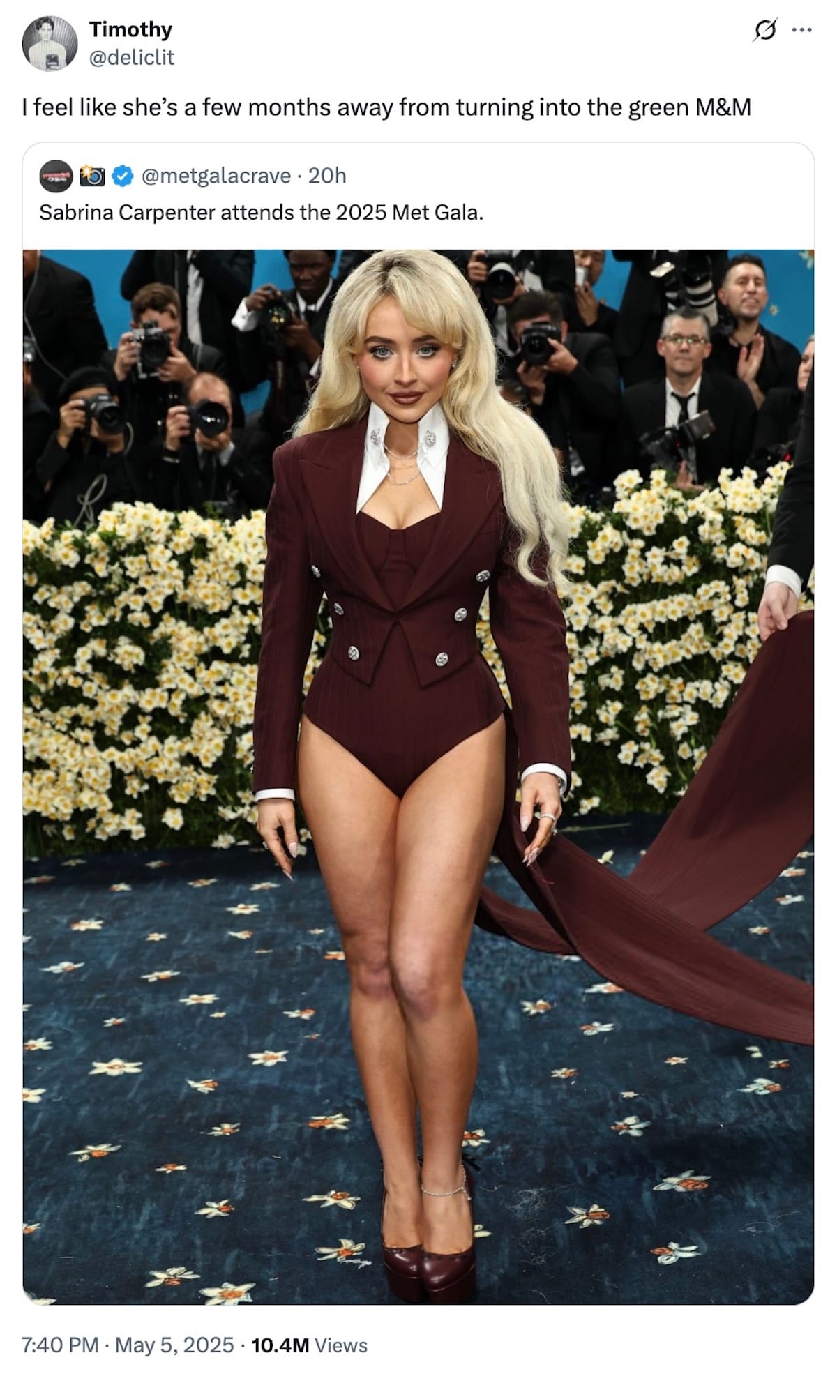With all that in mind, is the best thing people could come up with this year really that Sabrina Carpenter is on track to become the sexy Green M&M?