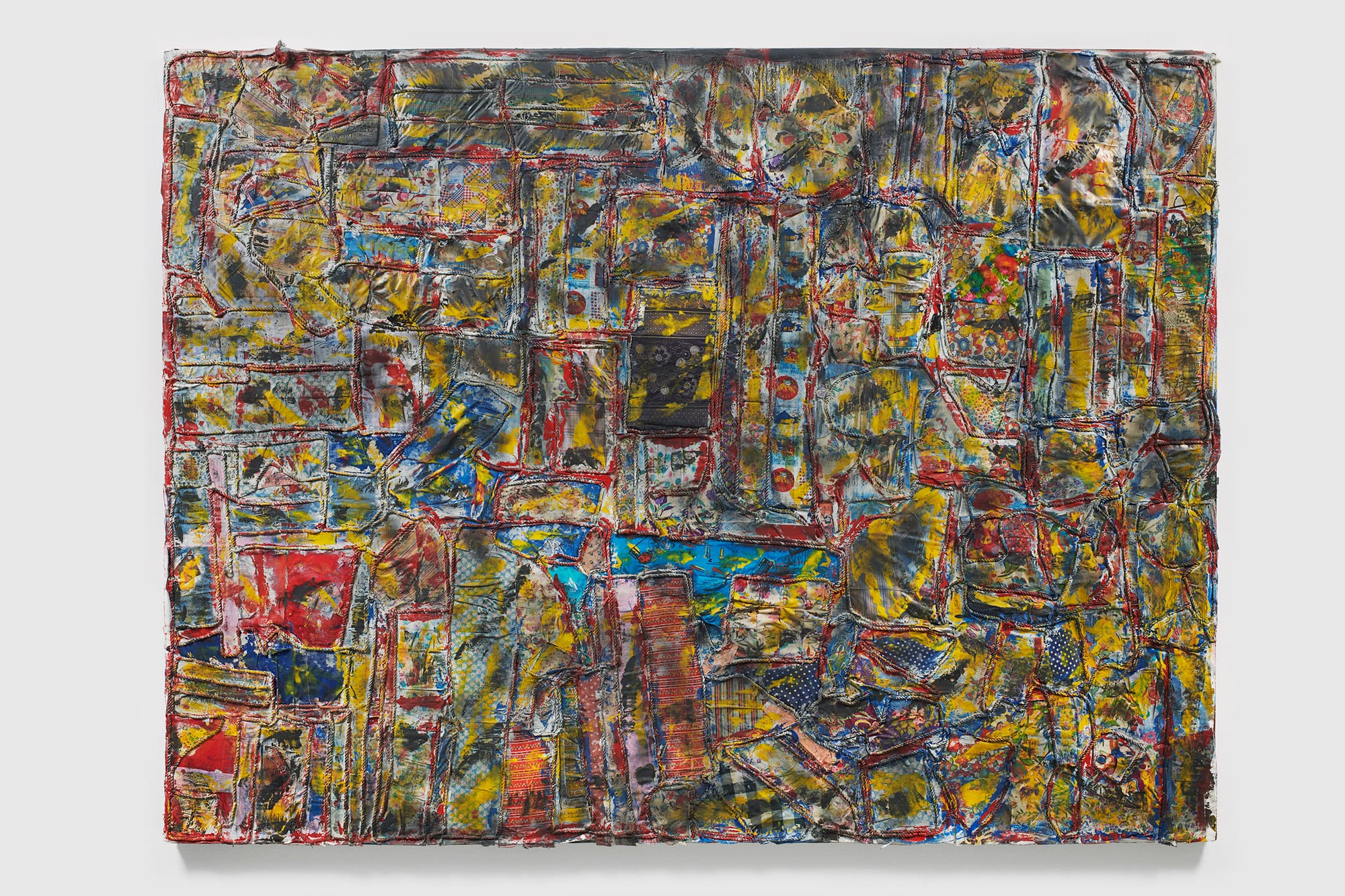 Thornton Dial, "In the Making of Our Oldest Things" (2008), fabric, twine, and enamel on canvas on wood 72 x 96 inches