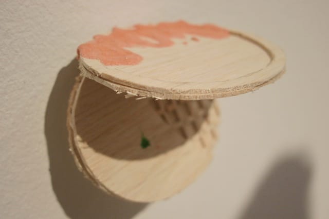 A rear gallery features Tuttle’s small sculptures, each no larger than a fist. They are loose, DIY in the sense of a summer-camp craft class, and appear one after another in a rhythmic sequence. Some of the pieces miss fleeting poetry and end up flat, which is a danger with work as improvisatory feeling as Tuttle’s. The artist echoes Flood’s attitude-driven iconoclasm but in a much more refined, less aggressive form that today, unfortunately, lacks the younger artist’s momentum. Tuttle’s sense of humor is that of New Yorker cartoons rather than gross-out band posters — great when they succeed, pretentious when they don’t.
