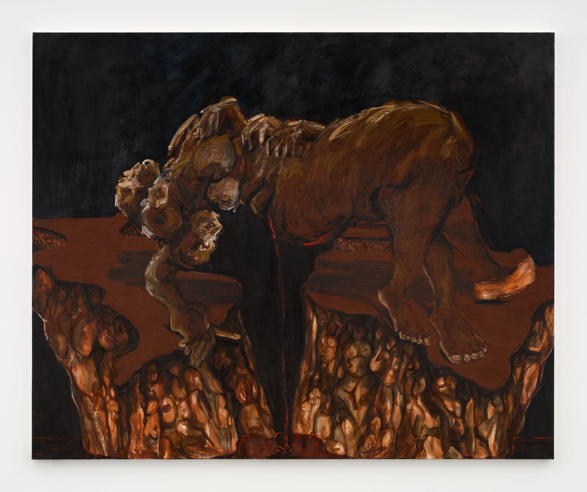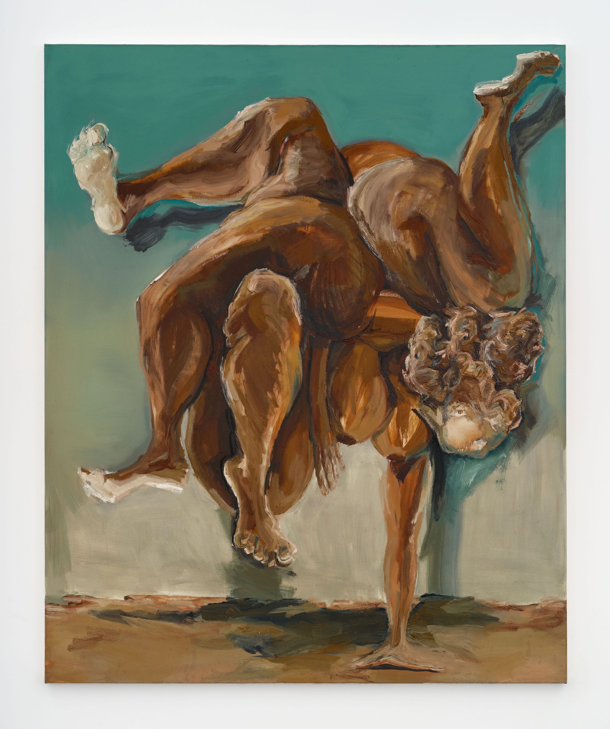 Early in her career, Márcia Falcão depicted the landscape of her hometown, Rio de Janeiro, where she still lives and works. Now, across her canvases, the body becomes its own kind of terrain, and vice versa. For her first solo exhibition with Night Gallery, featuring works from her Yoga, Capoeira, and Monumentais series (2022–ongoing), the artist’s mostly brown and red-toned paintings and sketches all feature large nude women in motion. In these various poses, the bodies become their own landscapes.