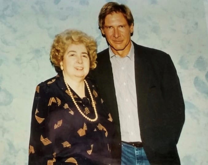 The celebrities in the snapshots run the gamut from A-list actors to entire casts of hit TV shows. Bruce Willis looks solemnly at the camera as Snoeys-Lagler similarly hides her smile. Patrick Stewart looks dapper in a tweed sport coat. Harrison Ford wears his signature half-smirk. Steven Spielberg looks as if he was caught off-guard. Sam Neill and Robert Downey Jr. stand on either side of Snoeys-Lagler in one picture, and in another she’s sandwiched between Kevin Bacon and a goateed Tom Hanks. She also snapped photos with Antonio Banderas and Johnny Depp in their long-haired youth.