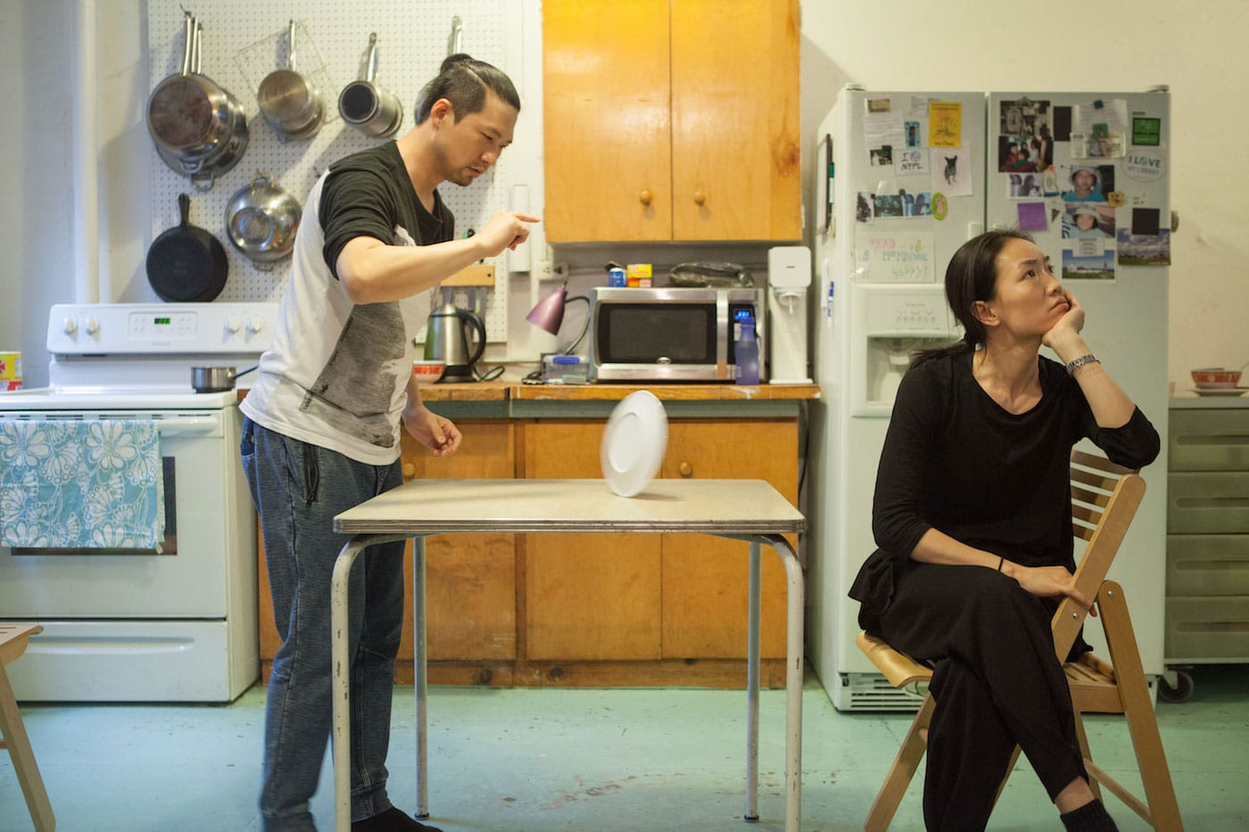 There was the scene in a fourth floor walkup on the Bowery, where a man and a woman danced around the dinner table, moving dishes and pulling their limbs in different directions as they sought to deal with the loneliness of trying to hold a relationship together across time zones.