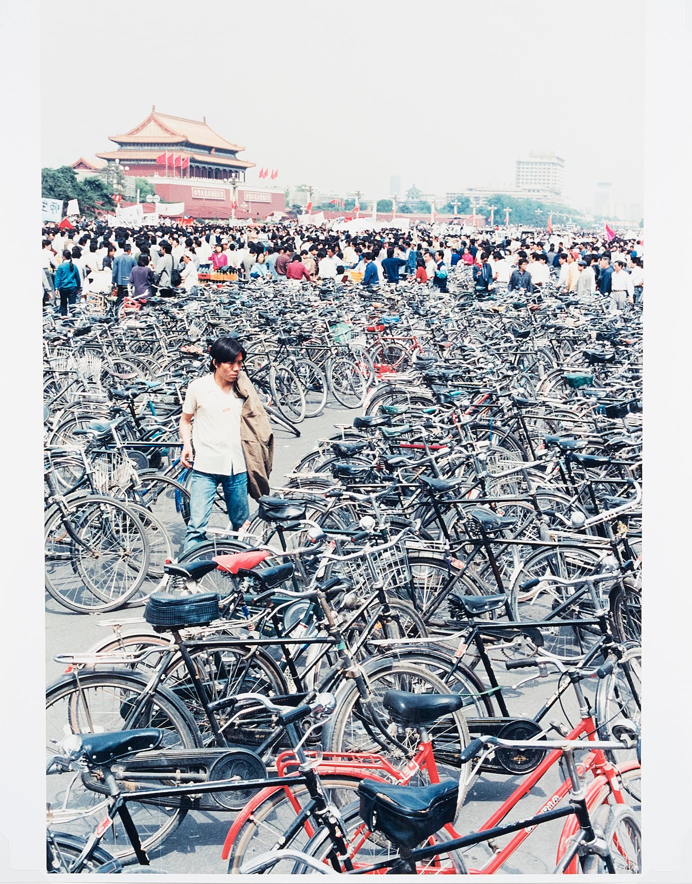 Hei began photographing the protests on April 15 and kept returning until June 7, by which time the dormitory he was living in was empty except for him and a Japanese student. Soon after, he left China for his own safety, taking with him around 40 rolls of film that he shot of Tiananmen Square, both in color and black-and-white.