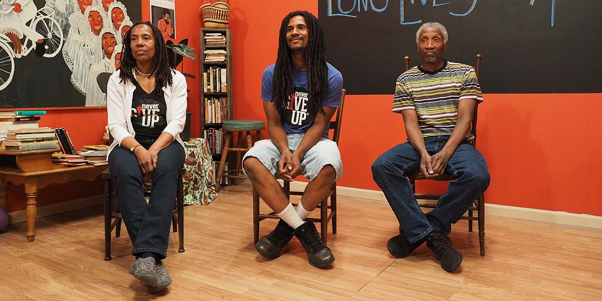 But The Inheritance is more than this. Archival footage of the aftermath of the 1985 police bombing of Philadelphia Black liberation group, MOVE, is interspersed throughout the film, reminding viewers of the violent, government-sanctioned force that has historically been used against Black communities. Yet the film is not only a documentary about the maligned, eco-socialist group. It also serves to recreate the spirit of a Black Marxist organization in West Philadelphia that Asili himself spent time with. Through conversations, poetry readings, and a workshop on the Nuer language, the filmmaker’s present-day, semi-fictionalized collective remembers the teachings of the Black Arts Movement and MOVE founder John Africa, while reinforcing its own cultural identity. Embodying the director’s description of the film as a “speculative re-enactment” of his own experiences, The Inheritance is playfully didactic and joyous in its creation of a safe space to nurture, discuss, and celebrate Black culture.