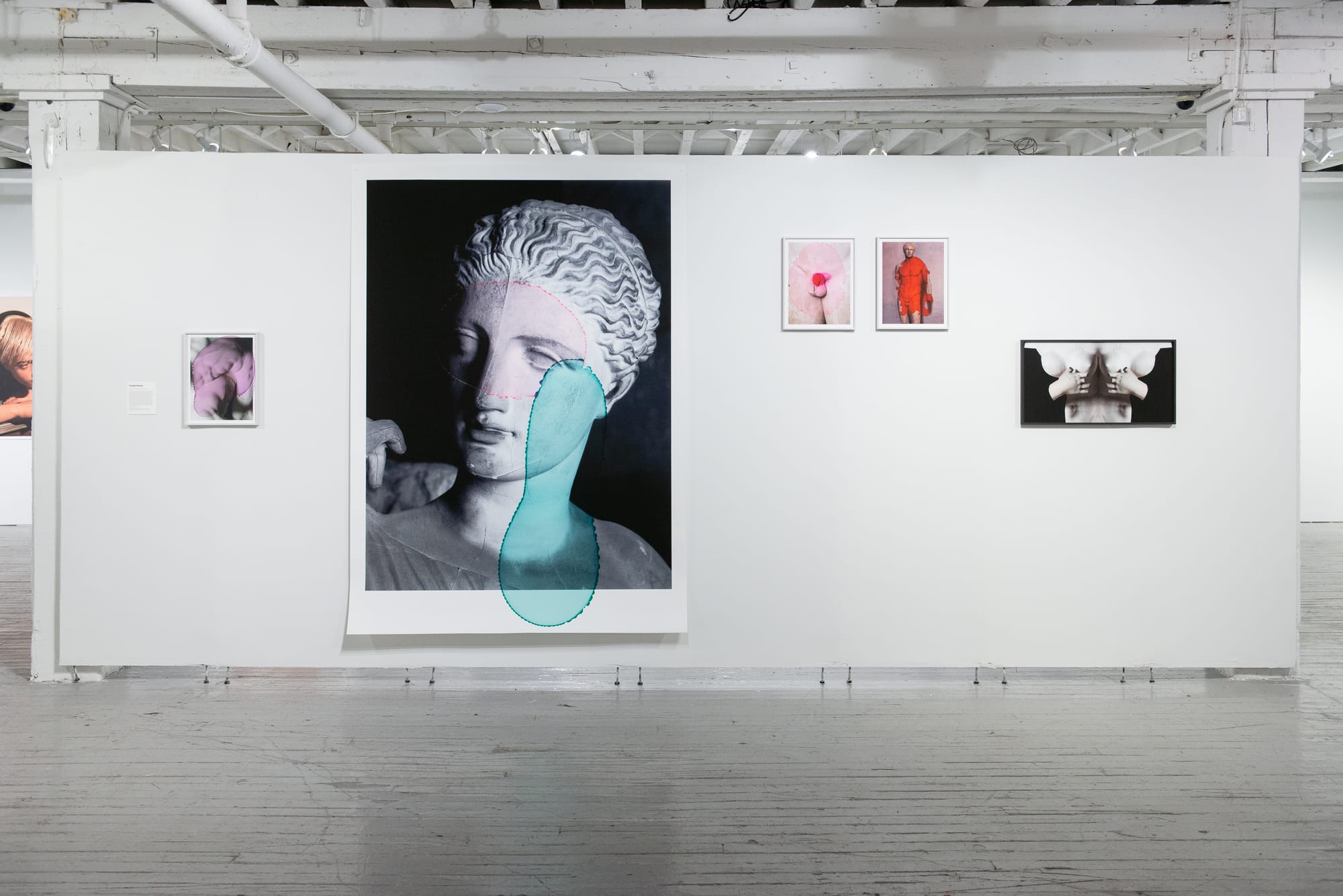 What results is an undeniably pleasing show aesthetically, reminiscent of those moments right before falling asleep in the sun; soft, hazy, and drenched in color. Cast against various lush backgrounds, Thomas explores androgyny in extravagant portraits of her partner Racquel Chevremont and performance artist Zachary Tye Richardson, while brilliant colors bleed into cold monochrome sculptures in Viviane Sassen’s Venus & Mercury series.