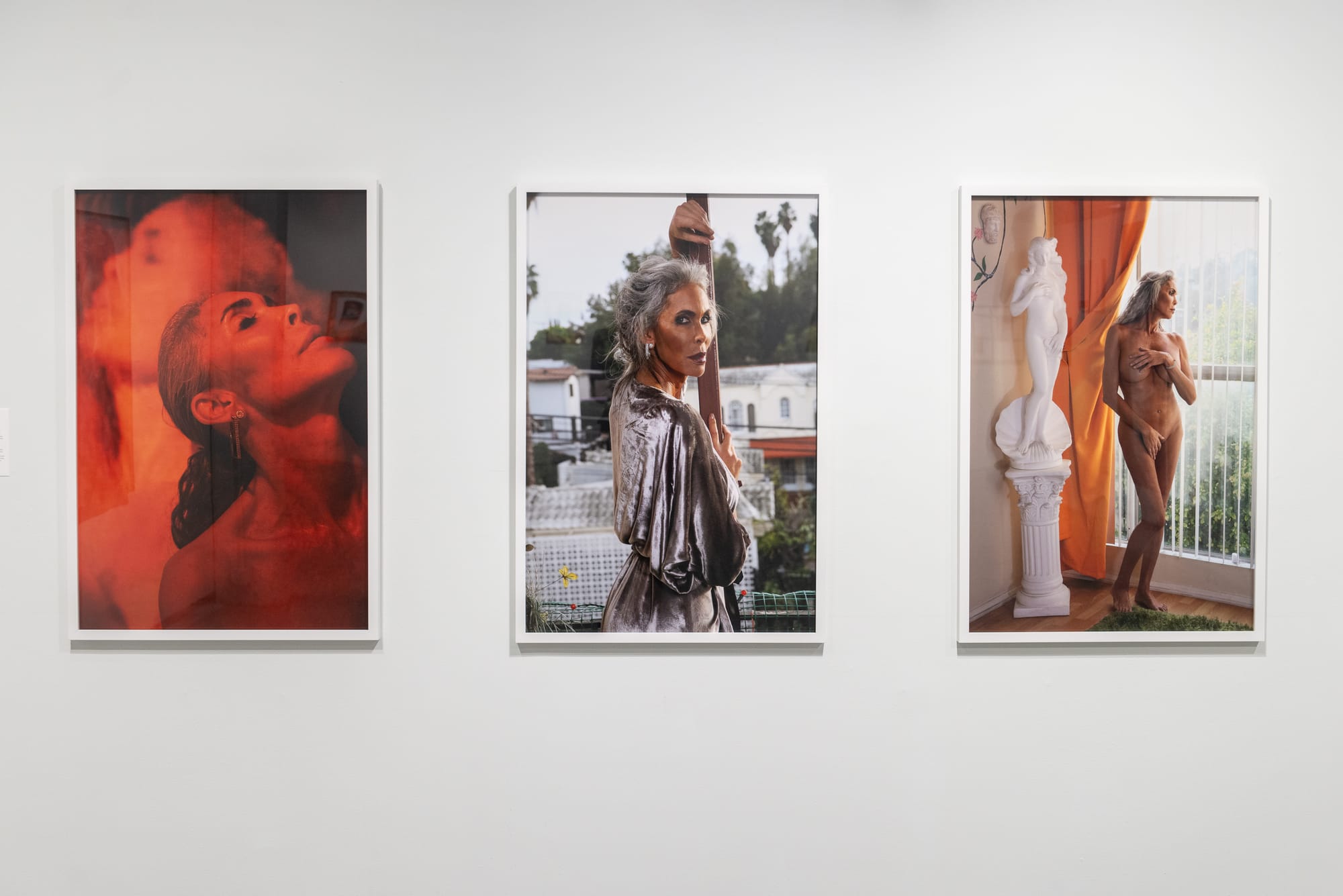 Most of the photographs, however, are focused precisely on gender as it relates to the body; from Collier Shorr documenting the transition of model Casil Mcarthur, in breathtaking photographs that risk falling into the “before” and “after” trope of gender transitions; to Drucker capturing her role model and trans icon Rosalyne Blumenstein wearing a number of fabulous outfits, as well as fully nude.
