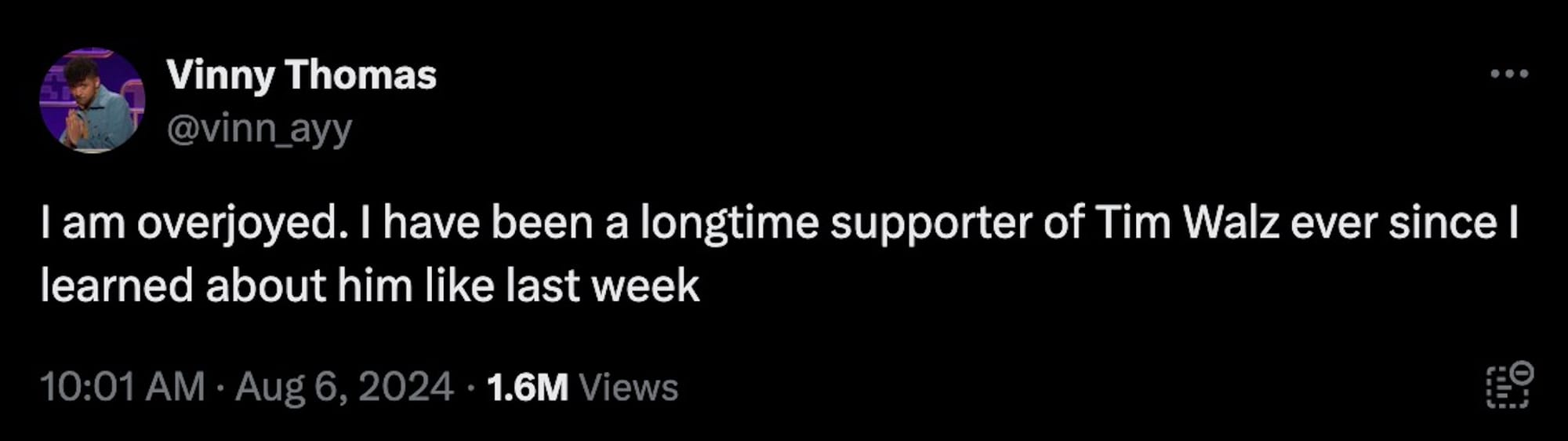 This is all good news for Democrats, and really anyone who hopes that the nation's next leader is not a convicted felon or ursine litterbug with brain worms. Walz seems like a pretty good dude, all things considered. But enough with the politics and platforms — let's get to the real question: How are the memes?