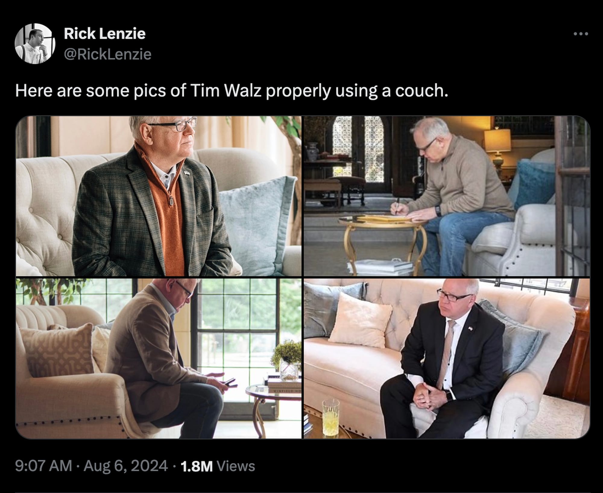 Because in addition to leveraging a progressive voter base in his state and supporting reproductive freedom, the Minnesota governor knows how to behave around a couch.