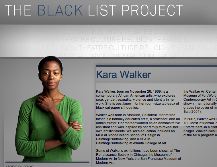In terms of your question about the art world, you know, we were very excited to get Kara Walker and Lorna Simpson and people like that into the project, because as wide as we wanted to make it, the art world is still a very tough place, and those are two women who were … who’ve made it, I guess, as artists. So we were thrilled to have them.
