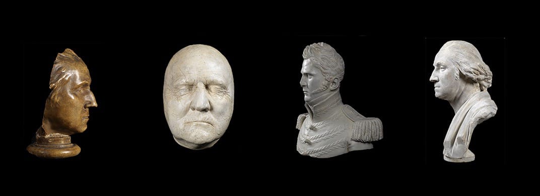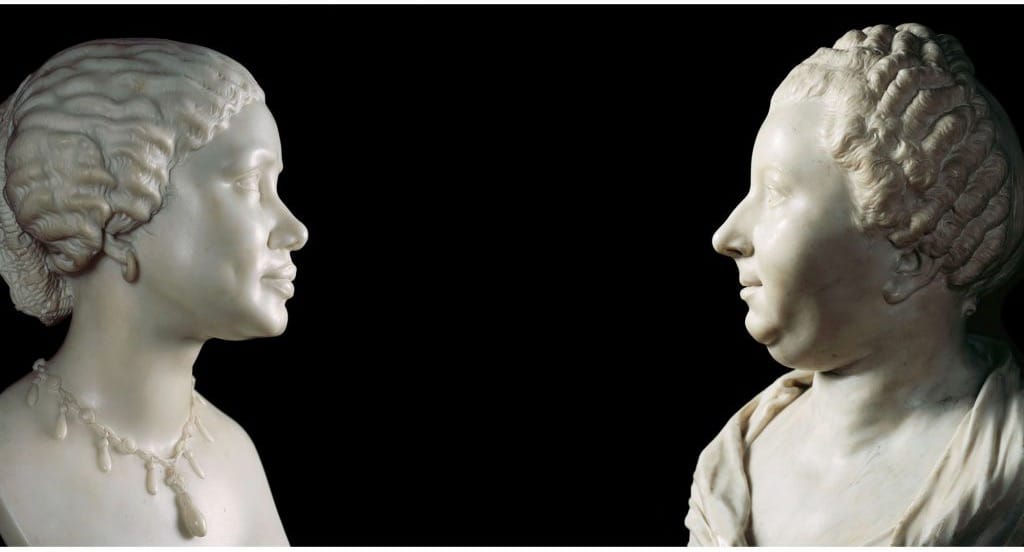 Ken Gonzales-Day, “Profiled Series: Untitled: Bust of Mary Seacole by Henry Weeks, Marble, 1859; and Bust of Mm. Adélaïde Julie Mirleau de Newville, née Garnier d’Isle by Jean-Baptiste Pigalle; marble, 1750s, both the J. Paul Getty Museum, Los Angeles” (2009, printed 2017) archival ink on rag paper (courtesy of the artist and Luis De Jesus, Los Angeles)
