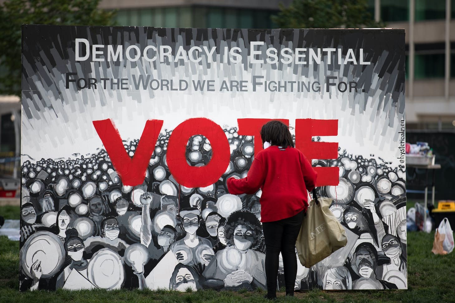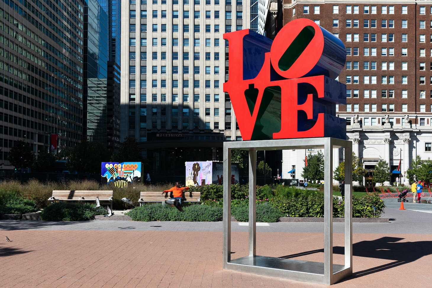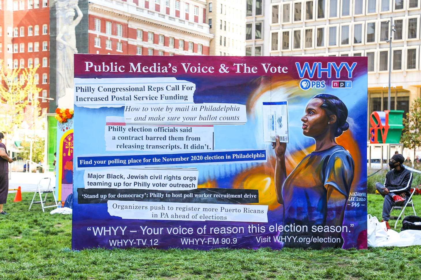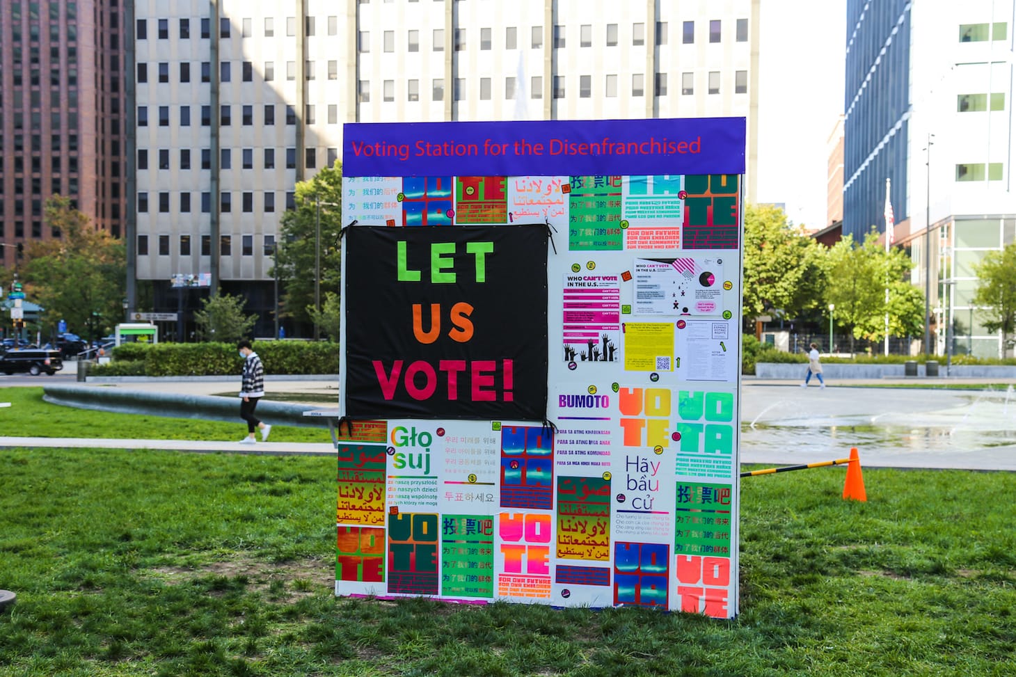 Artists all around the United States are doing their best to inspire people to vote, designing everything from large city billboards to catchy images that are downloadable at home. In Philadelphia, artists have erected brilliant murals in the middle of John F. Kennedy Plaza (better known as LOVE Park, after Roberta Indiana’s sculpture, which has graced the space since 1976). The nonpartisan initiative is run by Mural Arts Philadelphia, which is considered the nation’s largest public art program and has typically commissioned between 50 and 100 murals annually for the past 35 years.