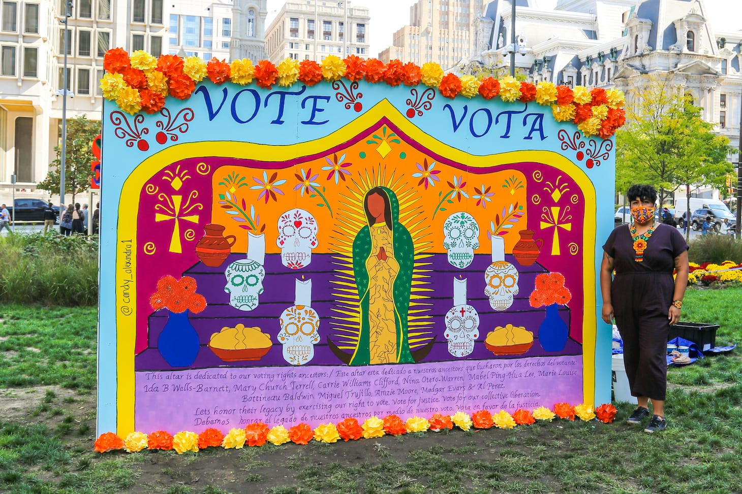 To the Polls 2020 features murals by six Philadelphia-based artists, including a jubilant altar to “our voting rights ancestors.”