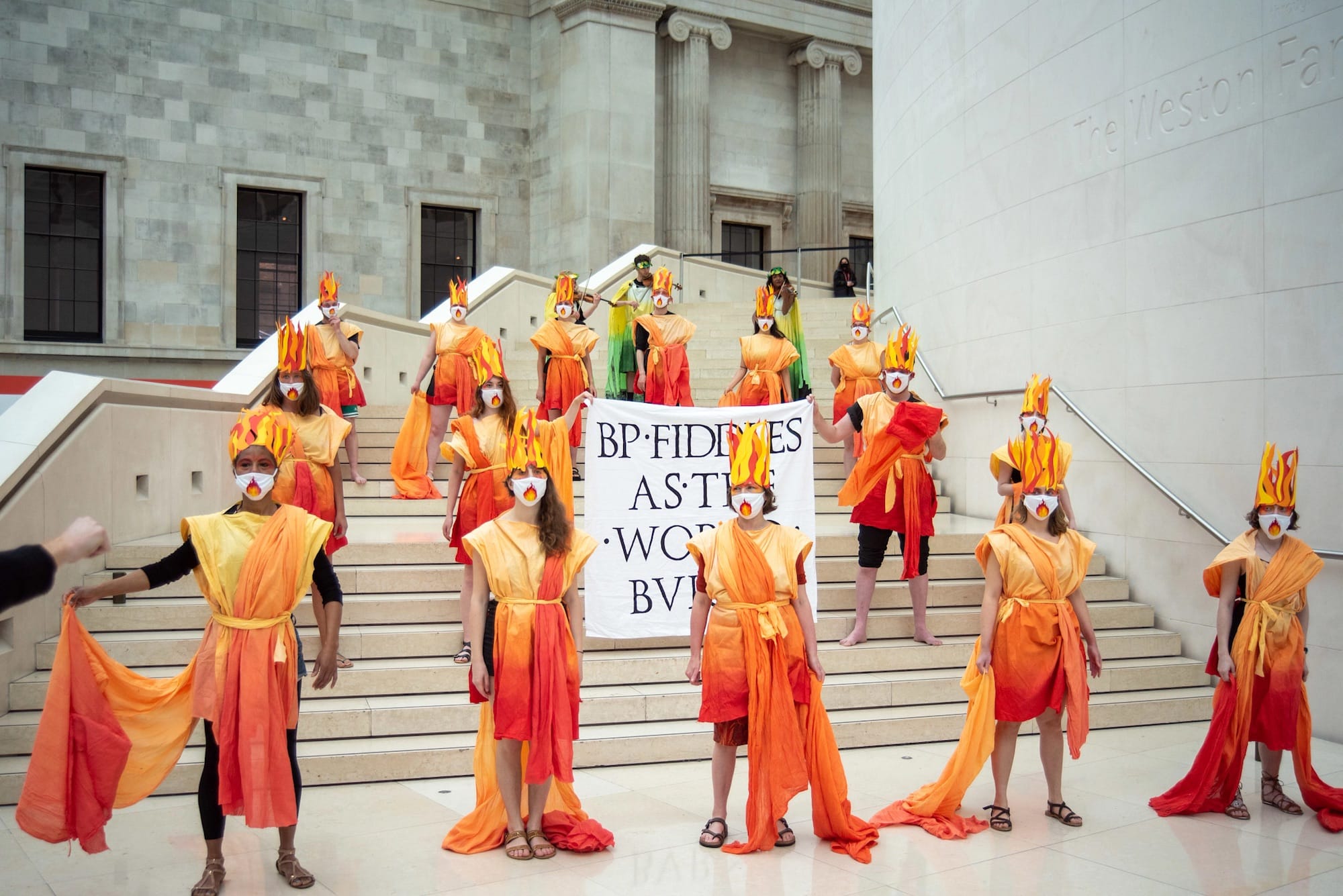 This weekend's protest at the British Museum shined a light on BP's fossil fuel expansion plans in areas already severely impacted by climate change-induced fires. In an audio clip played through speakers as part of the performance, the group shared a testimony by Julie Macken, a volunteer firefighter based in Sydney, Australia.