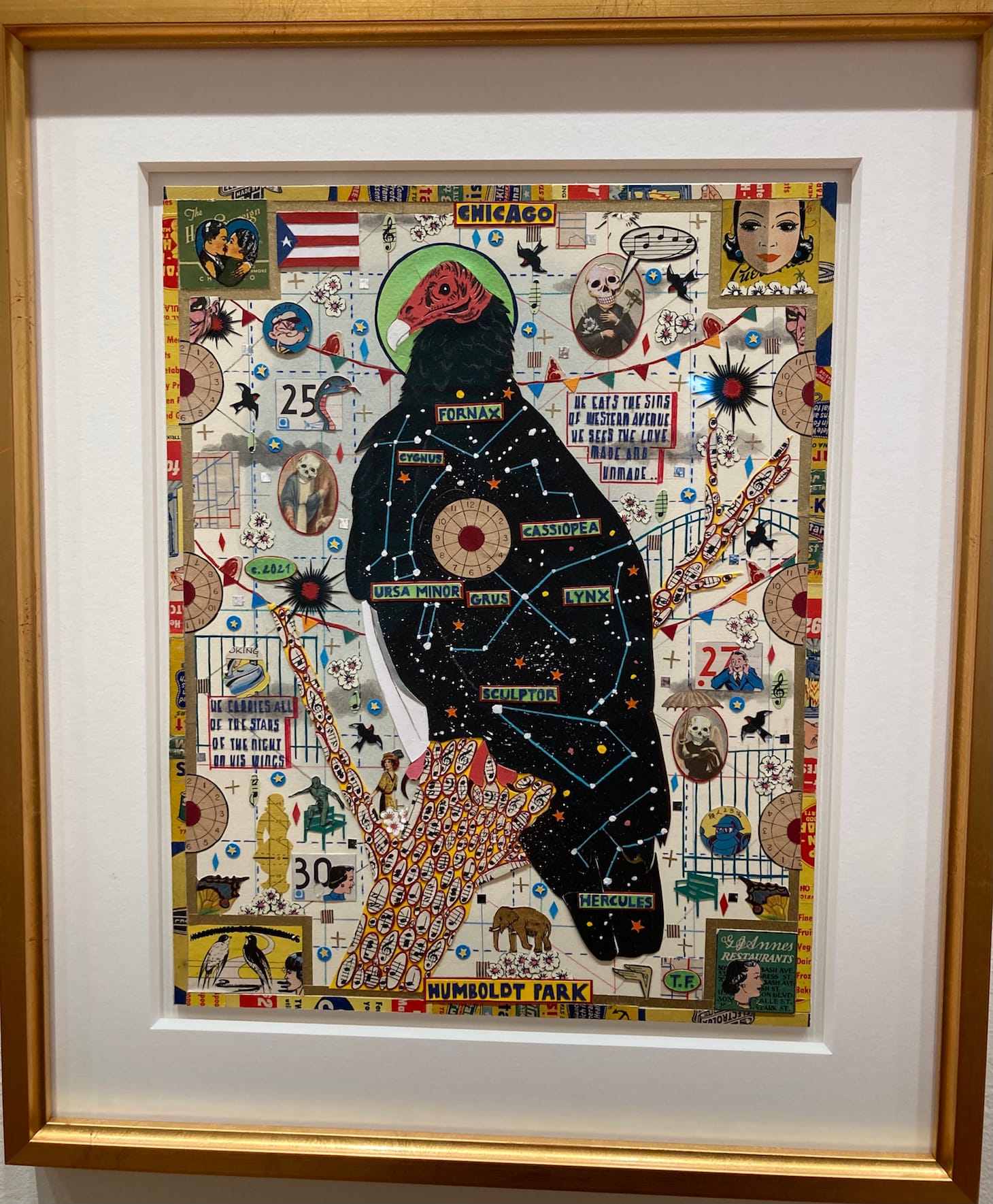 GLEN ELLYN, IL — In the past year, many people have sought solace in nature. It comes as no surprise that an artist would be among those who looked to nature for comfort during the difficult days of the pandemic. Tony Fitzpatrick, a world-renowned Chicago artist, found peace in the birds and other animals in Chicago’s Humboldt Park during COVID-19. He turned that tranquility into 29 new collages in his current museum show, Jesus of Western Avenue, at the Cleve Carney Museum of Art in DuPage County, near Chicago. The show was initially slated to open in the fall of 2020 but it was pushed back a full year due to the pandemic. In that time, the planned 60 artworks in the show grew to 90, including works he made in the past year, as well as additional loans that the museum received.