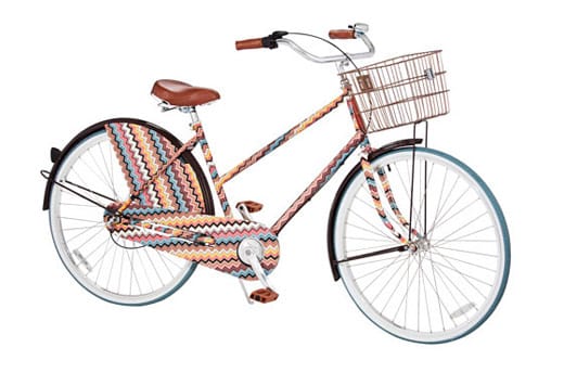 I guess designers are taking the “reinventing the wheel” challenge a bit too literally. In their capsule collection for the mass-retailer Target, Missoni applied their signature print to normal items such as dresses, skirts and ties. At the end of the list is a big “huh?” in the form of an honest-to-god Missoni print bicycle. It’s … cool, I guess. It makes me wonder if it would induce seizures to passing pedestrians, though.