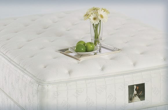 Considering her aptitude for designing plush, diaphanous, white concoctions for brides, it might not be totally off-the-wall for Vera Wang to design mattresses. Scratch that, it’s still pretty weird. Are they as soft as the many layers of duchesse satin and silk tulle in her wedding gowns? Do the pillowcases come with cathedral-length veils?