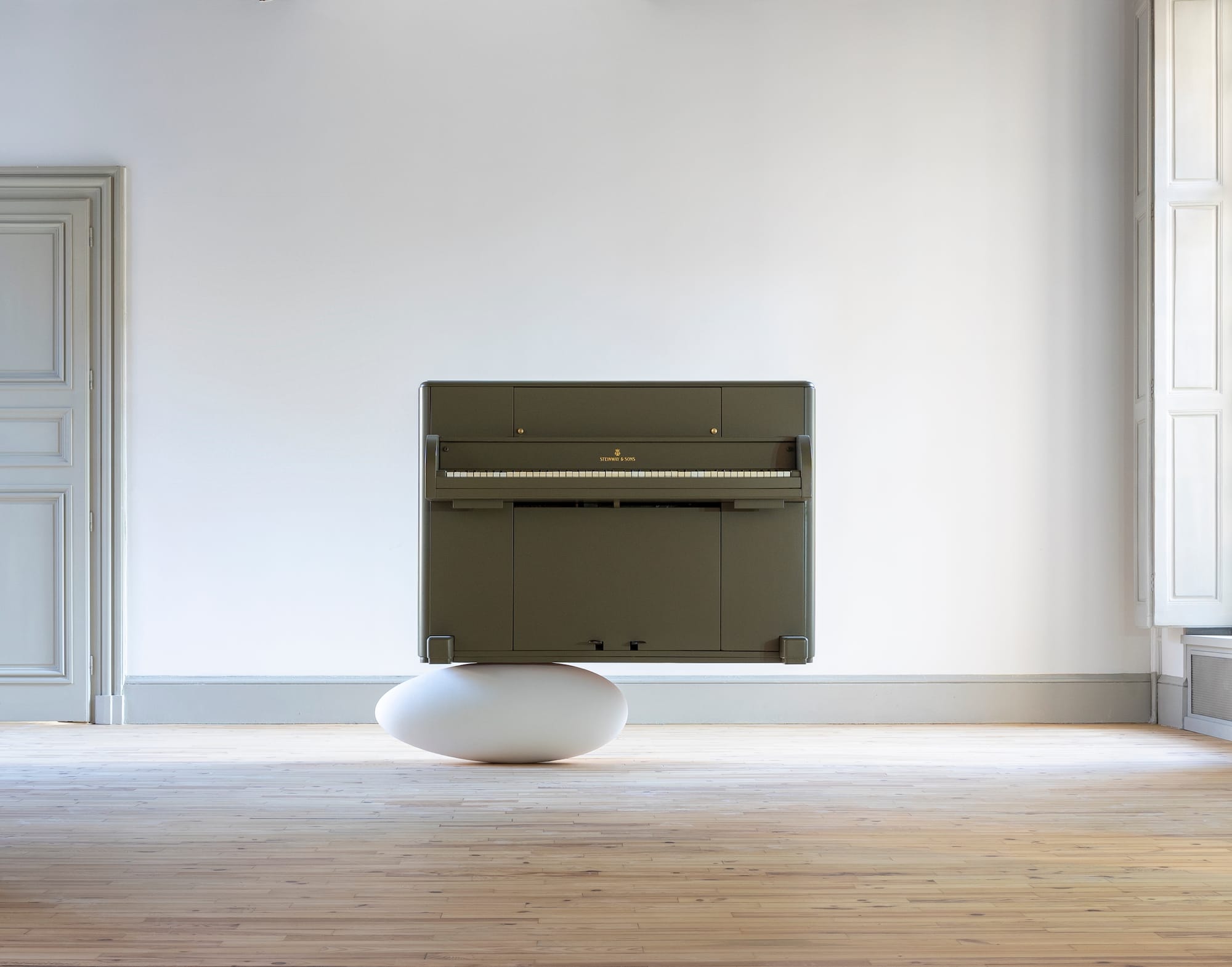 I was lured into Tarik Kiswanson's exhibition The Relief by the tentative sound of Beethoven’s “Ode to Joy,” and encountered “Steinway Victory Vertical” (1944), a piano that had been parachuted to World War II soldiers for psychological solace, precariously hovering above an egg-like sculpture. The rest of the exhibition only extended the spell, including a video of Saint-Denis Conservatory students hesitantly playing Beethoven’s melody and a pristine white structure with furniture tucked within, suspended midair. The Swedish-born artist of Palestinian descent blurs the line between art and architecture while quietly summoning histories (sometimes biographical) of loss, displacement, and renewal.