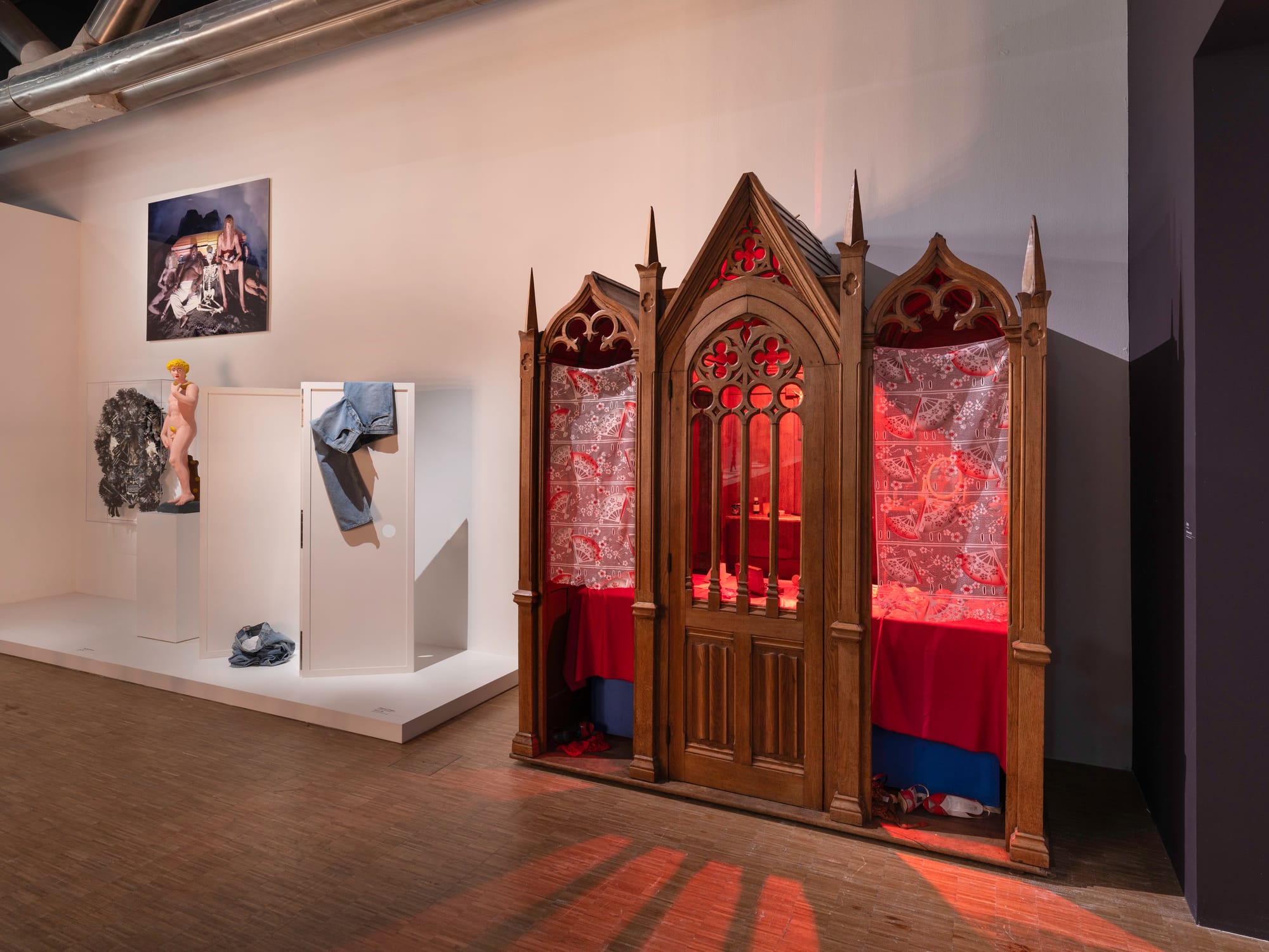 Walking into Énormément Bizarre was like stepping into the delirious mind of a brilliant hoarder. Artist Wim Delvoye uttered the titular words — “extremely bizarre” — when he encountered the astonishing universe Jean Chatelus (1939–2021) began assembling in his Parisian apartment starting in the 1960s. In this exhibition, nearly 400 works — sculptures, installations, paintings, photographs, drawings, vernacular objects and religious artifacts — capture the non-hierarchical, chaotic atmosphere of Chatelus’s apartment. It unfolds as a dense cartography of the collector’s obsessions: ruins, the macabre, apocalypse, and more — an accumulation that unsettles conventional notions of taste and institutional decorum.