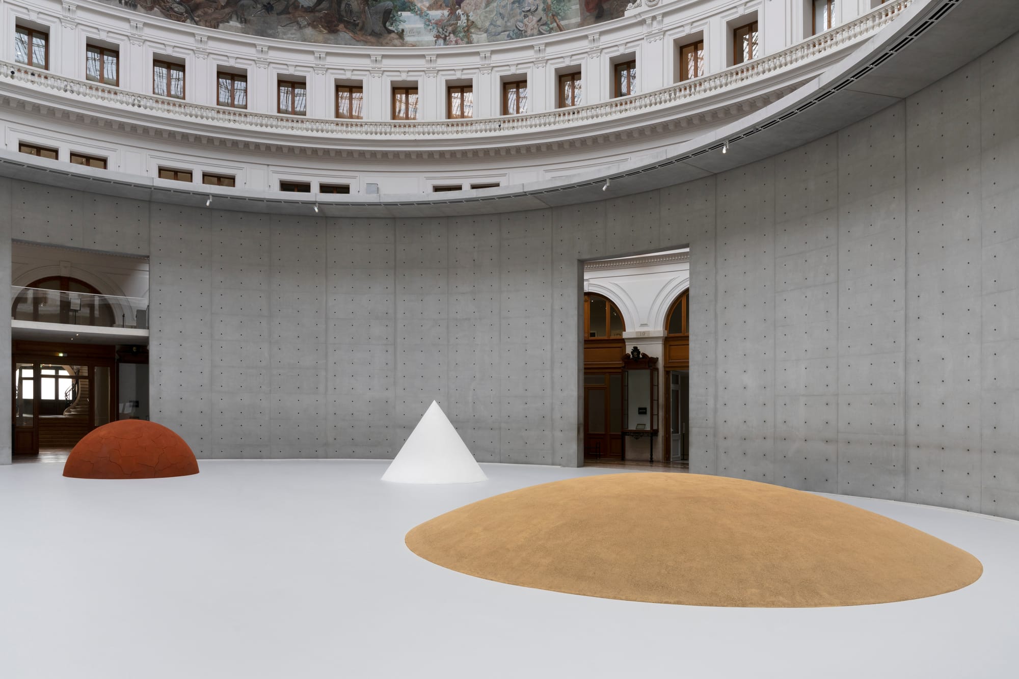 “Minimal” and “sensual” are two words one wouldn’t ordinarily associate with each other, yet they felt like a perfect pair when I wandered through the spectacular rotunda of La Bourse, immersing myself in Meg Webster’s sensory-rich sculptural works made of local soil, beeswax, salt, sticks, and clay. Drawing from movements ranging from Japanese Mono-ha and Brazilian Neo-Concretism to Italian Arte Povera and American Minimalism, this exhibition foregrounds how these geographically distant tendencies were bound by a shared impulse: to rethink the ties between artwork, viewer, and environment. This show felt particularly important in its ambition to expand Minimalism beyond the United States.