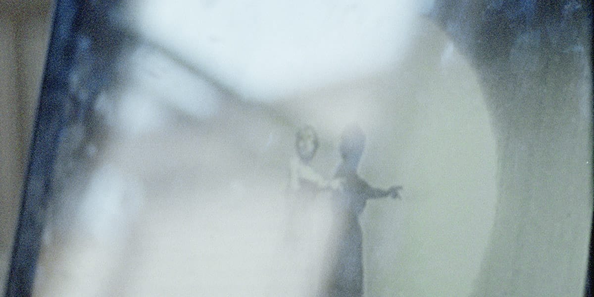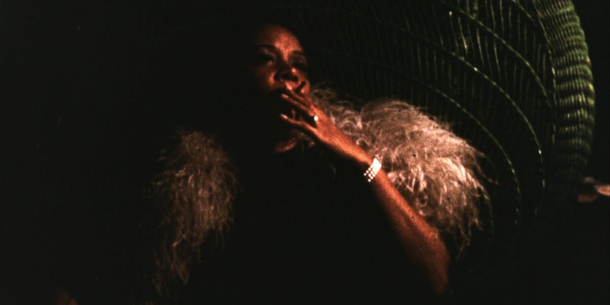 Similarly delicate, although otherwise quite different, is Edward Owens’s recently restored 1967 short Remembrance: A Portrait Study. Owens, a queer Black filmmaker who was active in New American Cinema and a student of beloved experimental director Gregory Markopoulos, left behind a number of rarely screened 16mm films after his death in 2009. One of these was the quietly rapturous Remembrance. Owens superimposes the images of his mother, Mildred Owens, elegantly dressed with pearls and dramatic feathers around her neck, with those of her friends enjoying themselves at a bar. The imagery is steeped in darkness, and slowly yields its textures. Theatrical décor — a doll’s head with macabre splatters of blood on its face, like a Grand Guignol stage set, superimposed with drawings to look like a head of a Medusa — gives way to more familiar surroundings. We see a flash of an orange hoop earing, and then middle-aged women at a bar, smoking and laughing, their beer cans laid out before them. The film is steeped in the atmosphere of speakeasies, set to Arthur Harrington Gibbs’s “Runnin’ Wild, Lost Control!” and soul music. But there are also more cryptic personal flashes, such as an image of a young Black man (Owens himself?), his head in his hands, the hands dramatically amplified and the composition distorted by the proximity of the lens. The short melds intimacy and impenetrability with these portraits.