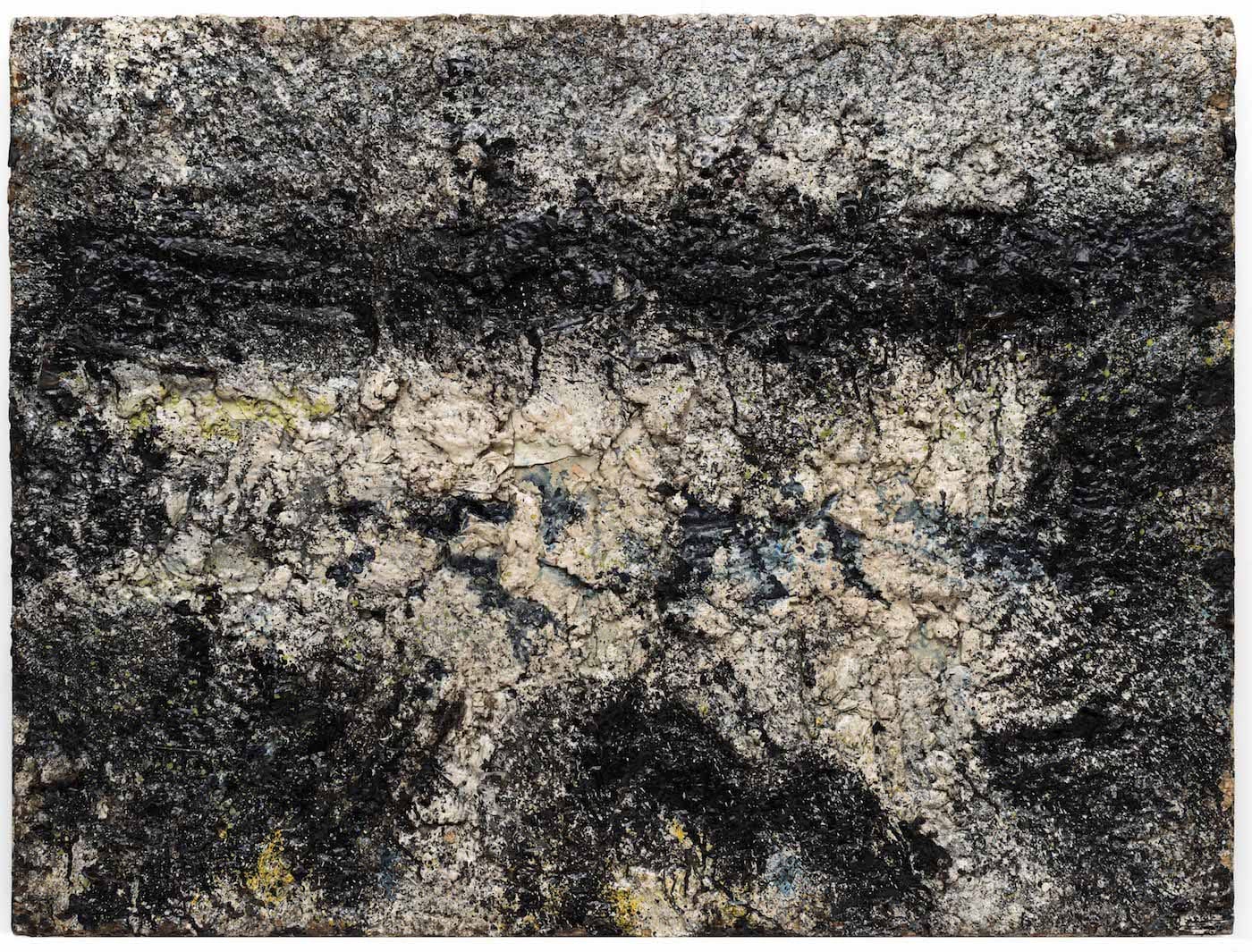 In those works, with pointed dabs or dark, rectangular burn marks, Yoshida devised remarkably vibrant and well-balanced compositions that bring to mind ancient East Asian ink-wash paintings, as well as the psycho-mysterious, “automatic” drawings of the Surrealists. (Yoshida’s wood-burning technique will remind some viewers that, in the mid-1950s, the Italian modernist Alberto Burri, who had made texture-rich “paintings” using scraps from burlap sacks, began producing torched-wood works of his own, as well as some made from melted plastic.)