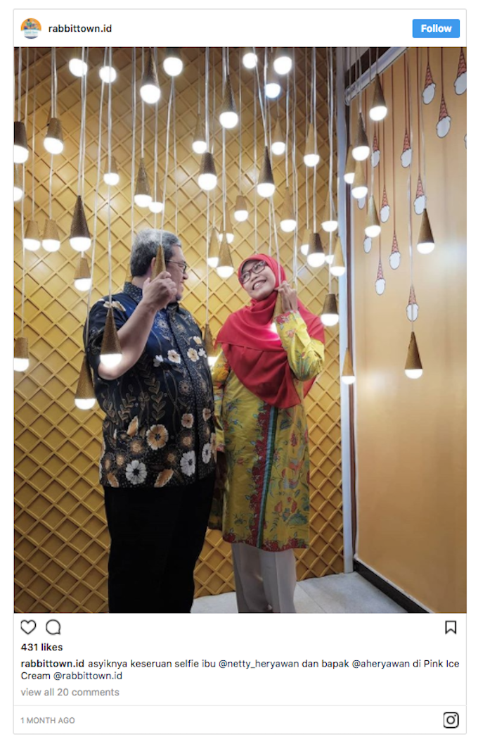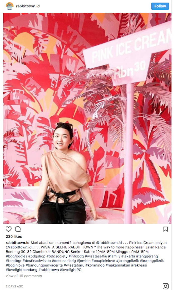 According to local daily Pikiran Raykat, Rabbit Town is owned by Henry Husada, a local developer who, in 2016, earned the Indonesian World Record Museum (MURI) Award for the “Record of Single Owner of the Most Hotels.” An entrance ticket costs 25,000 rupiahs, or $1.75 US, making the attraction an affordable destination, and one that has drawn crowds since its soft opening in January. Its reputation, however, has clearly suffered in the last week. On Facebook, where it has a two-star rating, a reviewer wrote, “Imitating other’s creation without giving credit to it’s respected creator is not cool.” Users on other social media platforms have poked fun at the obvious ripoffs, and others have denounced Rabbit Town for failing to use this opportunity to promote Indonesian artists. Instagram user @rascalities commented, “so instead of hiring local artists who deserve to have the opportunities and experiences to further their careers you’d rather plagiarize instead @rabbittown.id? we have a fucking amazing homegrown art culture and yet u do shit like this smh unbelievable.”