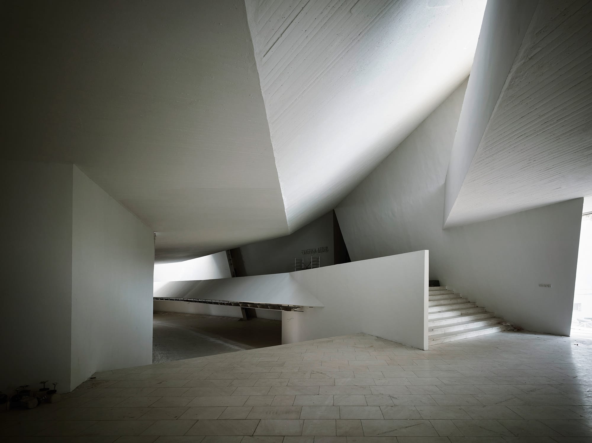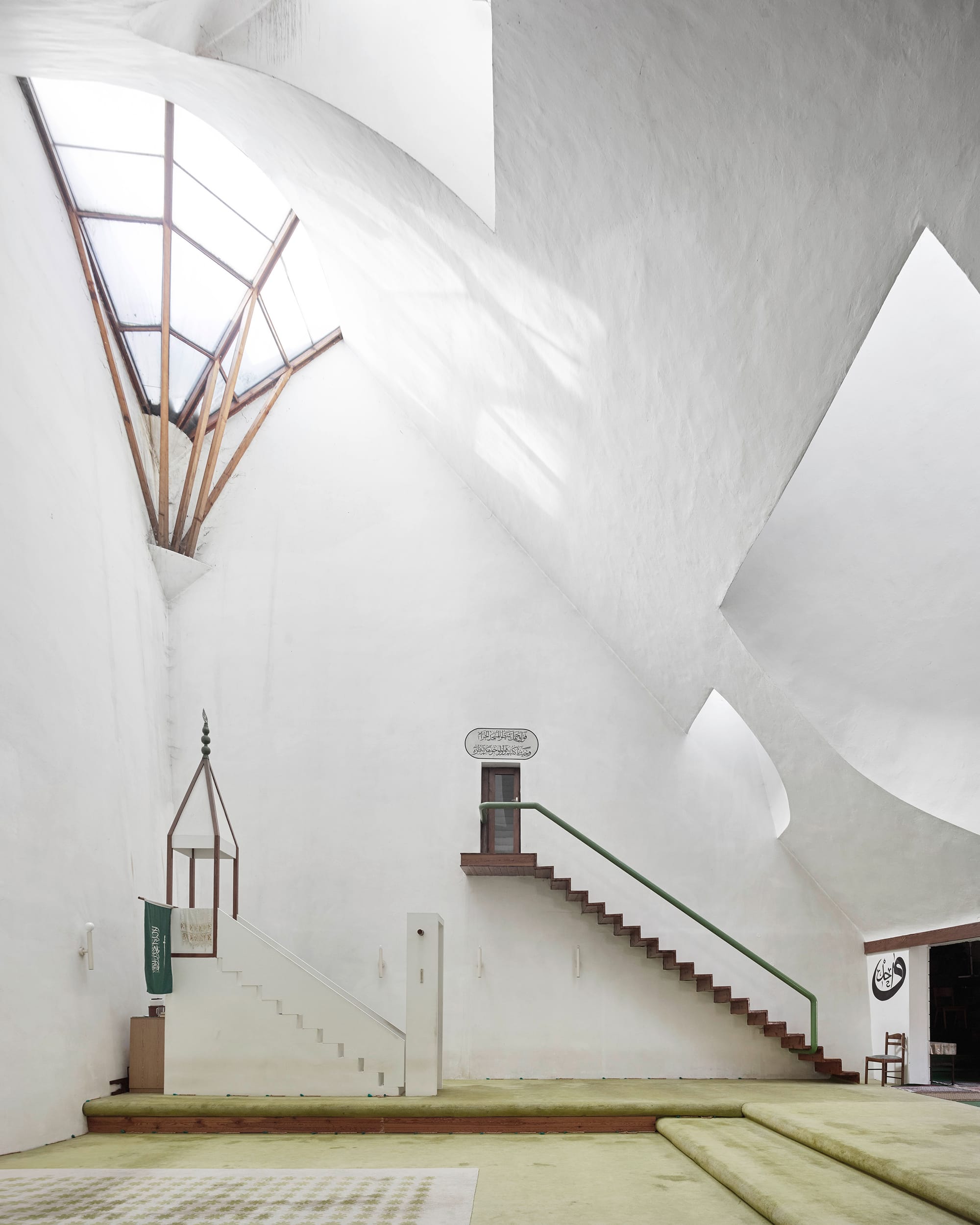 Two buildings that made the cut introduce elements of Ottoman architecture: the Šerefudin White Mosque in Visoko, Bosnia and Herzegovina (1980), designed by Zlatko Ugljen, and the University Library in Priština, Kosovo (1971-82), designed by Andrija Mutnjaković. In the mosque, Ugljen retains the sculptural geometry of a more typically Modernist building like the Macedonian Opera and Ballet in Skopje but softens it with long curves and hidden skylights. The structure suggests the remote corner of the domed reaches of a much bigger building, creating an effect that is both cozy and monumental. The library is assembled out of 99 cubes topped with domes, each module varying in size. These are organized into a rough square and clad in hexagonal metal mesh to reference the local tradition of filigree. Rather than pretty, it looks presciently protective.
