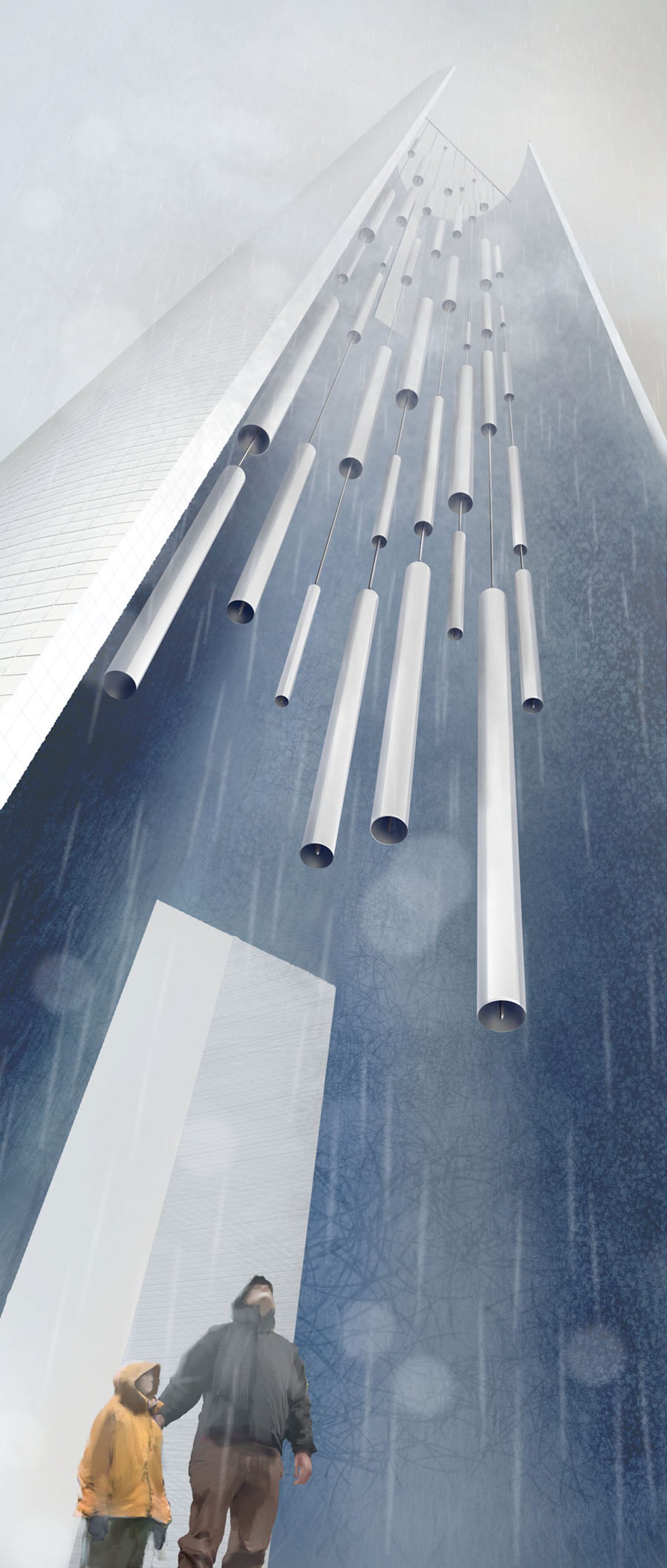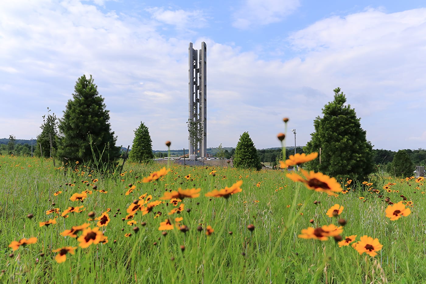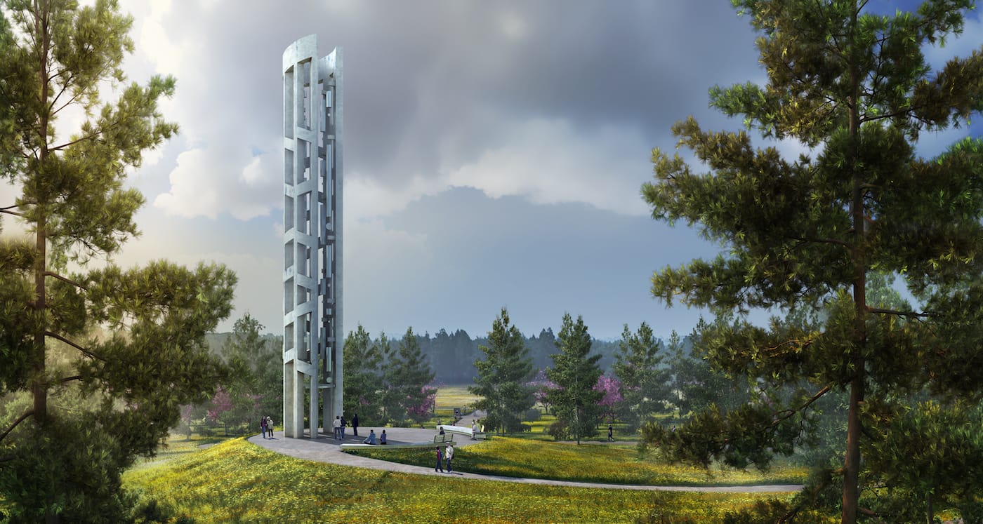 Alluding to the biblical Tower of Babel, Murdoch’s monument similarly investigates the cacophony of voices. As the chimes blow in the wind, their near-similar frequencies will create aural harmony and dissonance. A space for meditation, the “Tower of Voices” speaks to the specific tragedy of September 11 and its incomprehensibility for the many people still trying to understand the implications of that day. More meta-theatrically, one might argue that this collision of harmony and dissonance evokes the very battle between advocates of the Flight 93 National Memorial and its conspiratorial opponents.