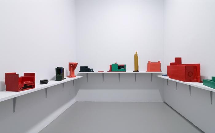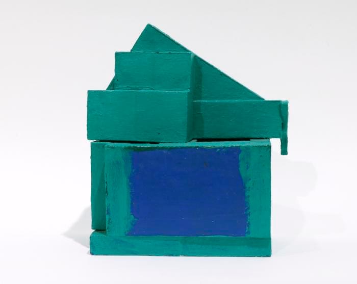The sculptures on view in the project room feel like the results of a lot of daydreaming by Howe, who is 87 and happens to be developmentally disabled. If you get the chance to spend some time with the smallish, toy-sized works, it’s hard not to think of them as interior, or “inner,” spaces, because the artist has been mostly nonverbal his whole life. For several decades he has been making work at Gateway Arts in Brookline, Massachusetts, a place which provides art studio space specifically for people with disabilities.