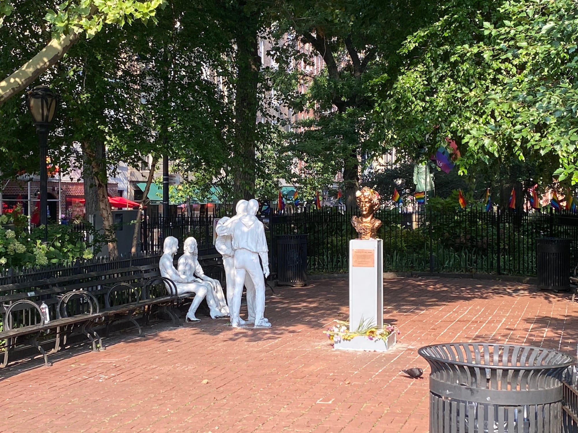 In 2021, community activists took matters into their own hands and put up their own guerrilla bust honoring Johnson in the middle of Christopher Park. Created by artist Jesse Pallotta, "A Love Letter to Marsha" (2021) was later displayed at the Lesbian, Gay, Bisexual and Transgender Community Center.