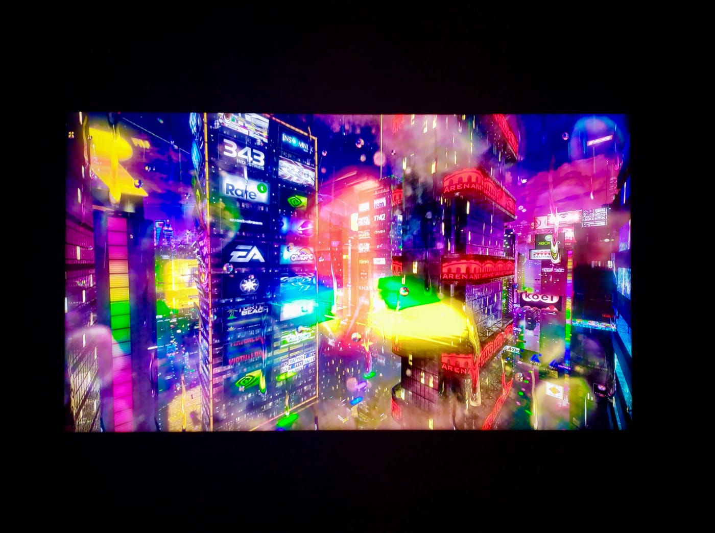 The blending of identity with cultural signifiers via avatar is, unsurprisingly, central to several the exhibition’s interactive works; Rachel Rossin’s Skinsuits VR experience plugs participants into an abstract landscape where the main action of your character is to continually shed its skin, revealing new layers of character skins. The very nature of avatars as potential alter-egos makes this VR experience feel somewhat diagnostic — as though in revealing a particular set of skins, the game is telling you something about yourself. (The identifiable characters in my short time on the machine were Batman and Bender from Futurama, which is basically accurate.)