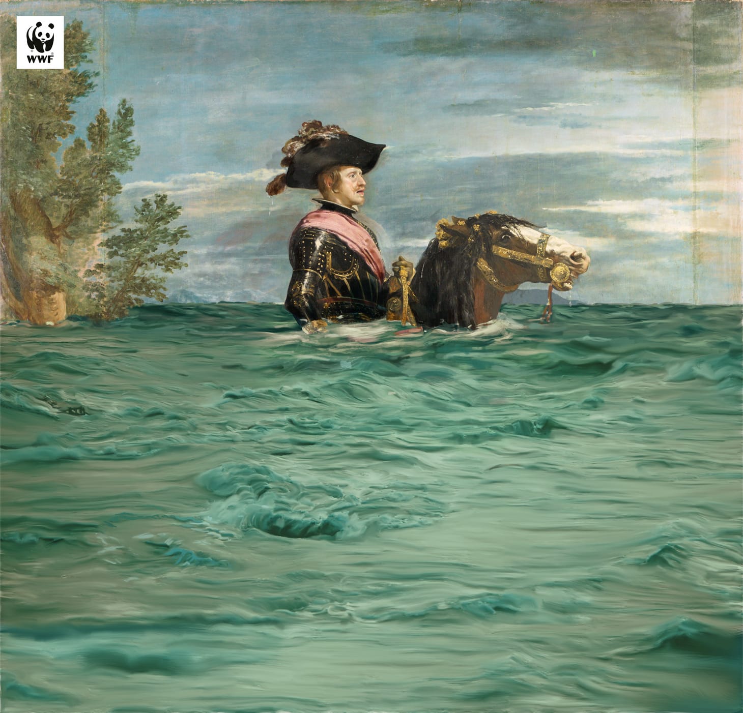 In a joint project, Museo del Prado and the World Wildlife Fund altered four masterpieces from the Prado’s collection to warn about the rising sea levels, the extinction of species, extreme droughts, and climate refugees.