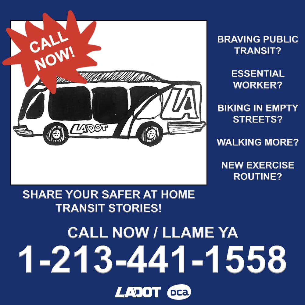 Renée Reizman, the artist-in-residence at the LA Department of Transportation (and also a Hyperallergic contributor), came up with the idea to launch a “Safer LA 2020 Story Hotline” during the pandemic. From now through the telethon, Reizman is welcoming anyone in Los Angeles to share what their commute has been like during the Safer at Home Orders, “whether you’ve been out getting supplies during the pandemic” or “fighting for racial justice and police abolition at Black Lives Matter protests.” Anyone interested in participating just has to call (213) 441-1558.