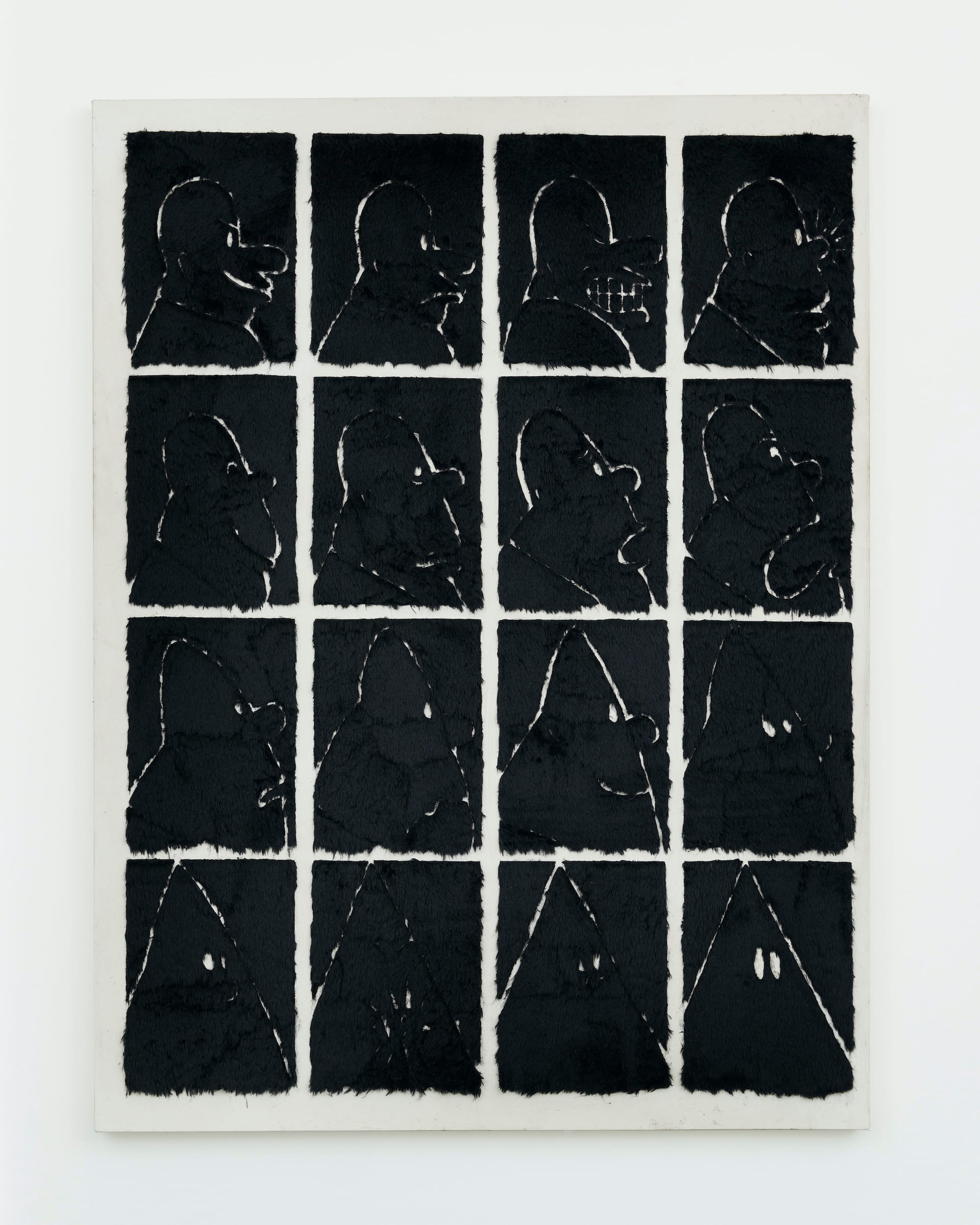 In “The Studio” (1969), Guston depicts a hooded Klansman before his easel, smoking a cigarette and painting his self-portrait. Above the easel is a bare light bulb and a clock with one hand. Guston implicates himself in a racist system, rather than dividing the world into “us” and “them.” Hancock’s “Globe Trotters” (2023) is a grid of 16 rectangles, each one showing Torpedo Boy in profile. By the last panel, he has completely morphed into a hooded Klansman. These works are funny, sad, weird, unsettling, and, most importantly, both direct and opaque. I am reminded of the cartoonist Walt Kelly’s anthropomorphic possum, Pogo, announcing: “We have met the enemy, and he is us.”