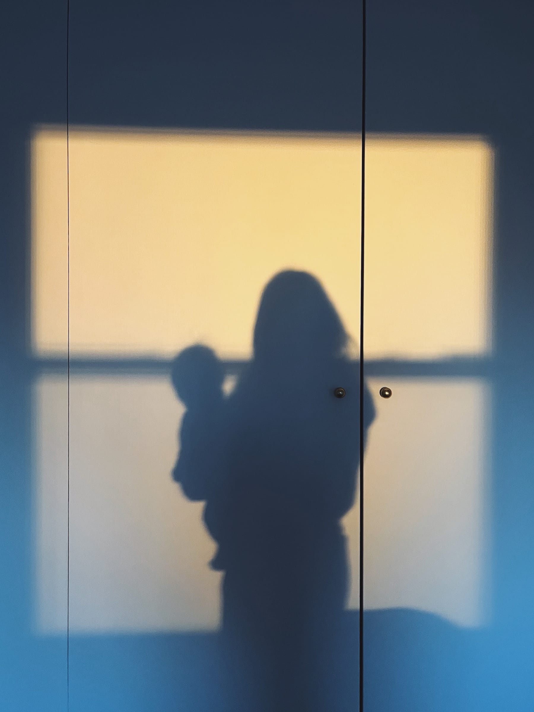 This painting, titled “Unwanted Thoughts,” is about the common yet taboo experience of having distressing, uninvited thoughts of harming one’s baby. As a reproductive psychiatrist, I see many mothers and birthing parents who feel alone because their experience of motherhood doesn’t match traditional notions of uncomplicated joyful devotion. Yet I think this is the dominant experience of motherhood — rife with ambivalence, anxiety and tortured thoughts, in addition to love and joy. I identify with this as a parent and an artist who feels the constant pull to be in my studio and the feeling of loss that accompanies both the decision to stay and the decision to go. These days I am trying to reimagine motherhood not as a precarious balancing act in which one side detracts from the other, instead pushing myself to recognize the potential for synergy among my various identities. In the words of famous maximalist Robert Venturi, “less is a bore.” At least this is what I tell myself at the end of a night spent catching up on medical documentation, sketching and cleaning up the remnants of forts. —Sharon Madanes, Artist and Reproductive Psychiatrist
