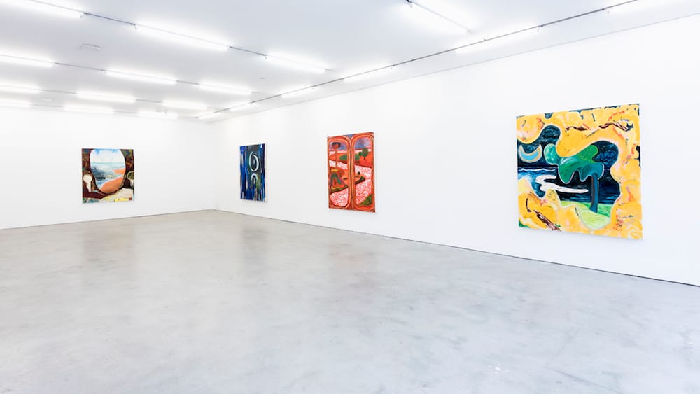 For her solo debut at Marlborough Chelsea, Shara Hughes presents eight near-dizzying kaleidoscopic paintings of landscapes and oceans.