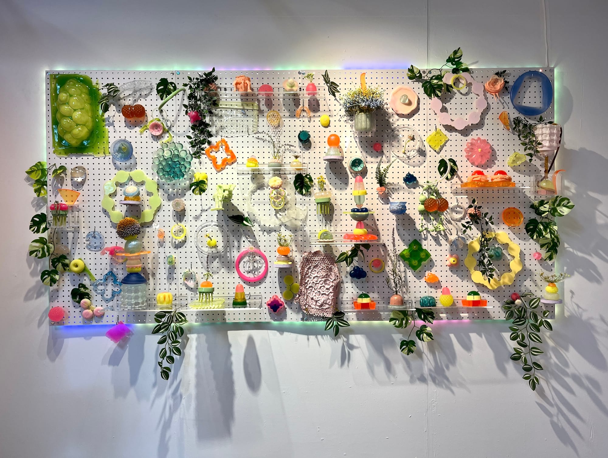 It wasn't just the painted walls — phosphorescent and acid-washed color palettes dominated booth displays this year, as in Philippe Hyojung Kim's collection of obsessive and bright mold-cast bits of plastic and epoxy brought to us by The Vestibule in Seattle, Washington.