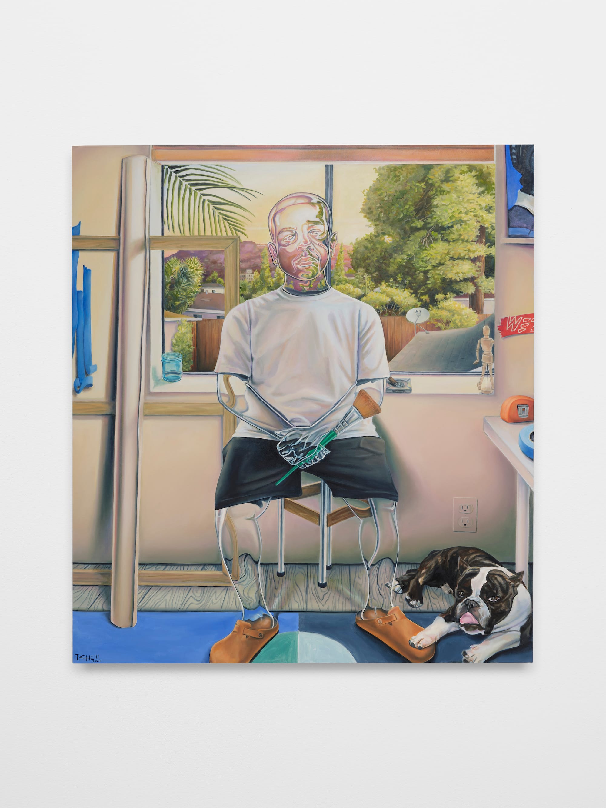SAN FRANCISCO — In his new exhibition at Altman Siegel, Troy Lamarr Chew II muses on the social invisibility of his subjects through the simple device of depicting aspects of their bodies as if transparent. Figures and their surroundings are rendered in detail save for faces and limbs, through which background objects can be seen, as if they were made of plastic or glass. With this technique, Chew reveals hints of the larger forces of culture and society that define and marginalize subjects like his, most of whom, despite their transparent masks, seem to be Black or Brown. Can we really see each other, Chew asks, or are we looking right through?