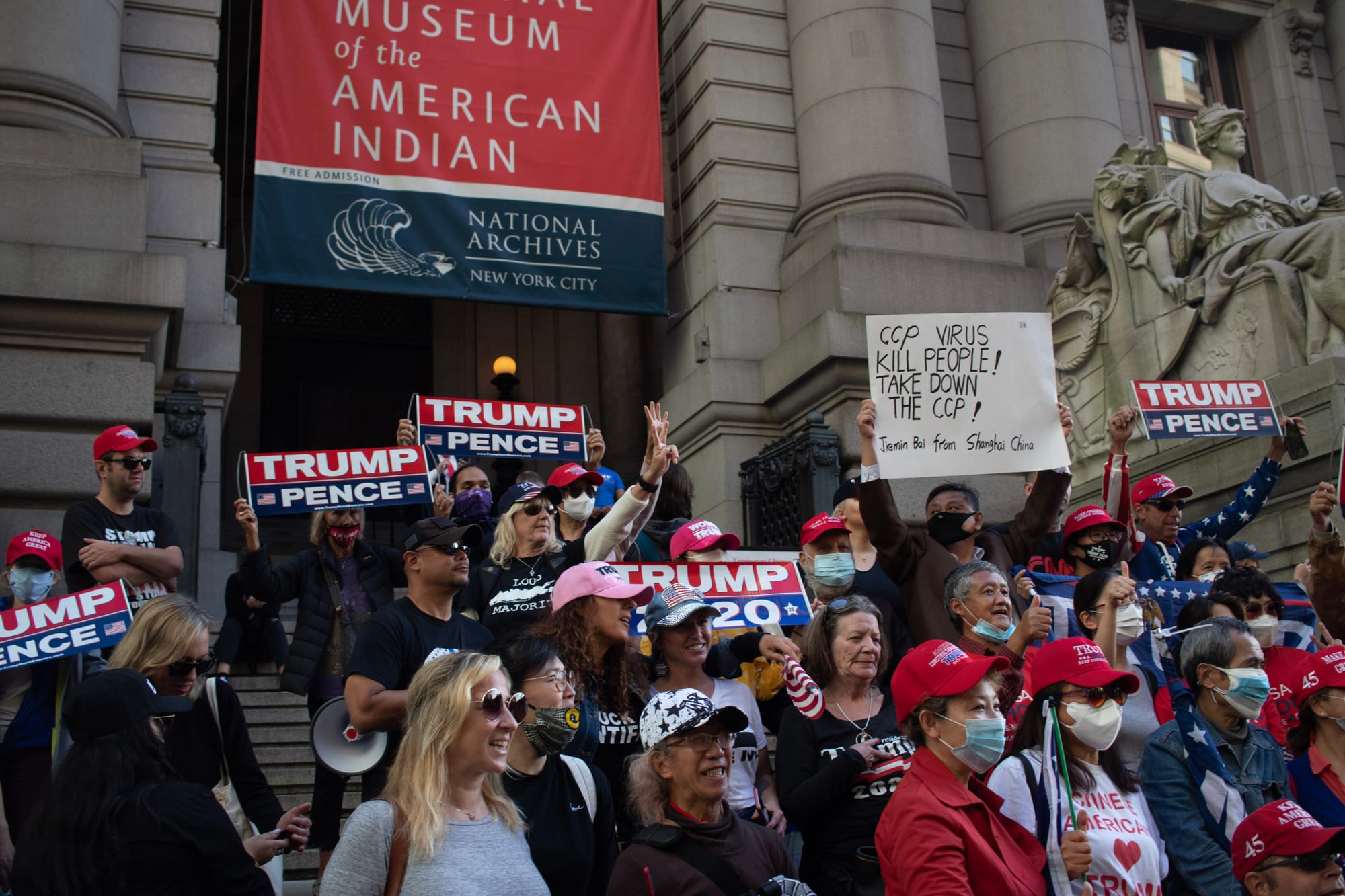 Around 3pm yesterday, a group of about 70 Trump supporters marched from City Hall to the Museum of the American Indian in Lower Manhattan.